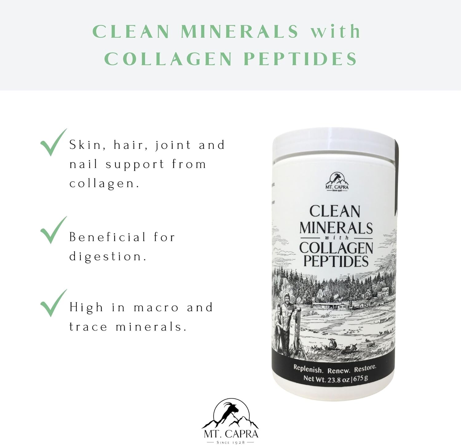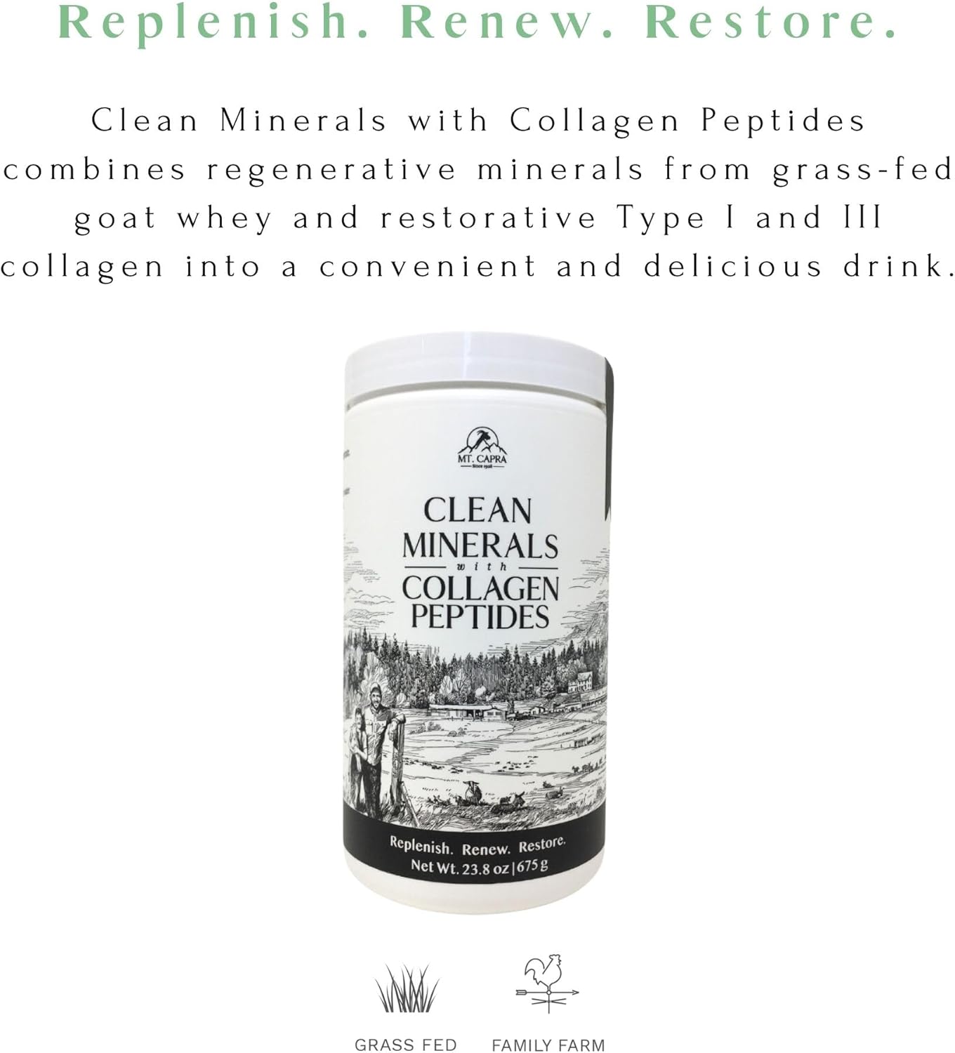 Mt. Capra Clean Minerals With Collagen Peptides | Whole Food Minerals From Goat Milk Whey And Grass-Fed Type I And Iii Collagen Peptides | 10 G Protein Per Serving | Unflavored | 20 Servings - 23.8 Oz