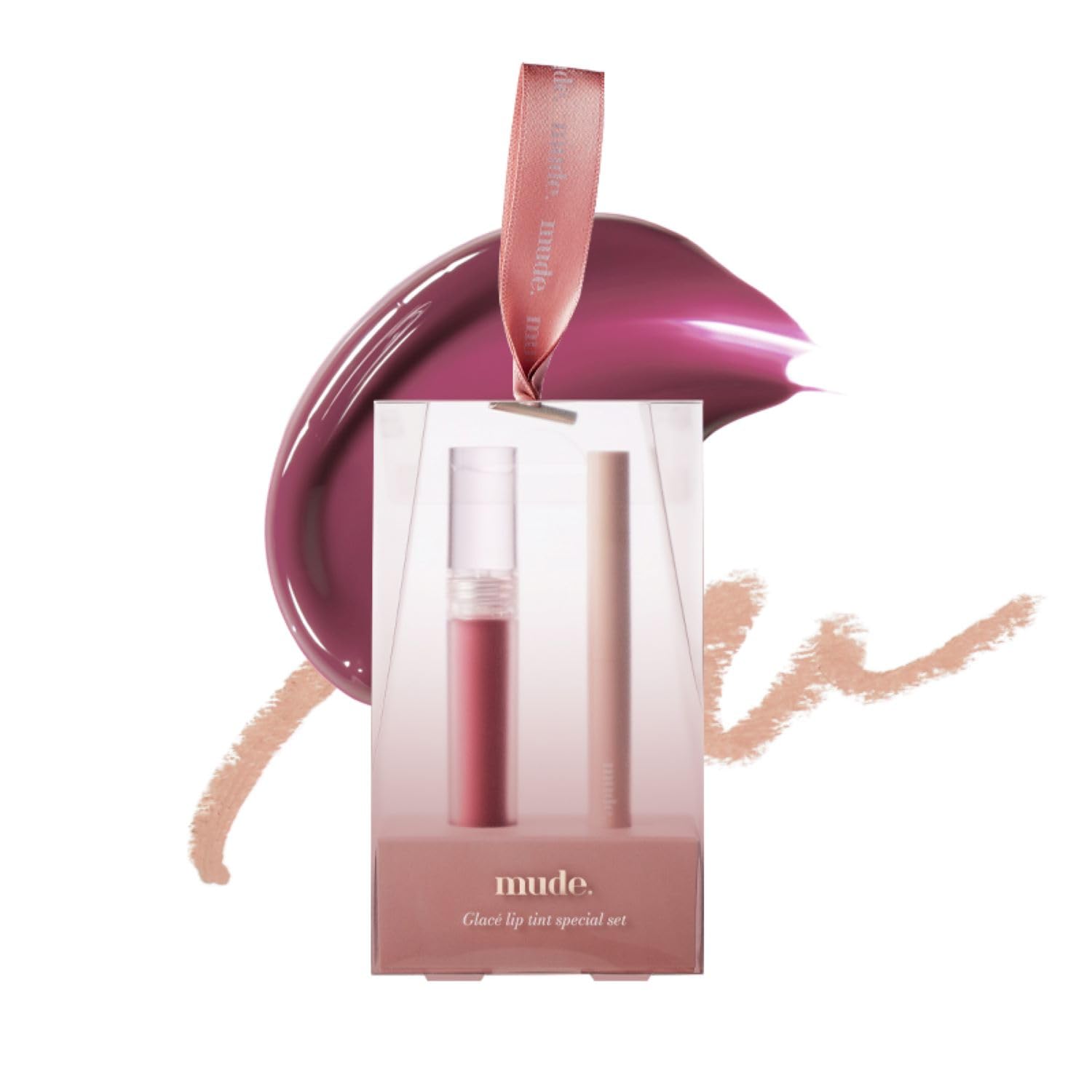 Mude Glacé Lip Tint 09 Plum Tea&Lip Liner Special Set Gift For Her Have A Plumped-Looking Lips With Blendable Lip Liner