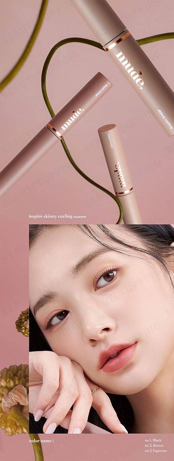 Mude Inspire Skinny Curling & Multi-Fixer Mahogany Rosy Brown Mascara Volumizing Curling For Dramatic Lashes Smudge-Proof Water-Proof Stays On All Day (03 Espresso)