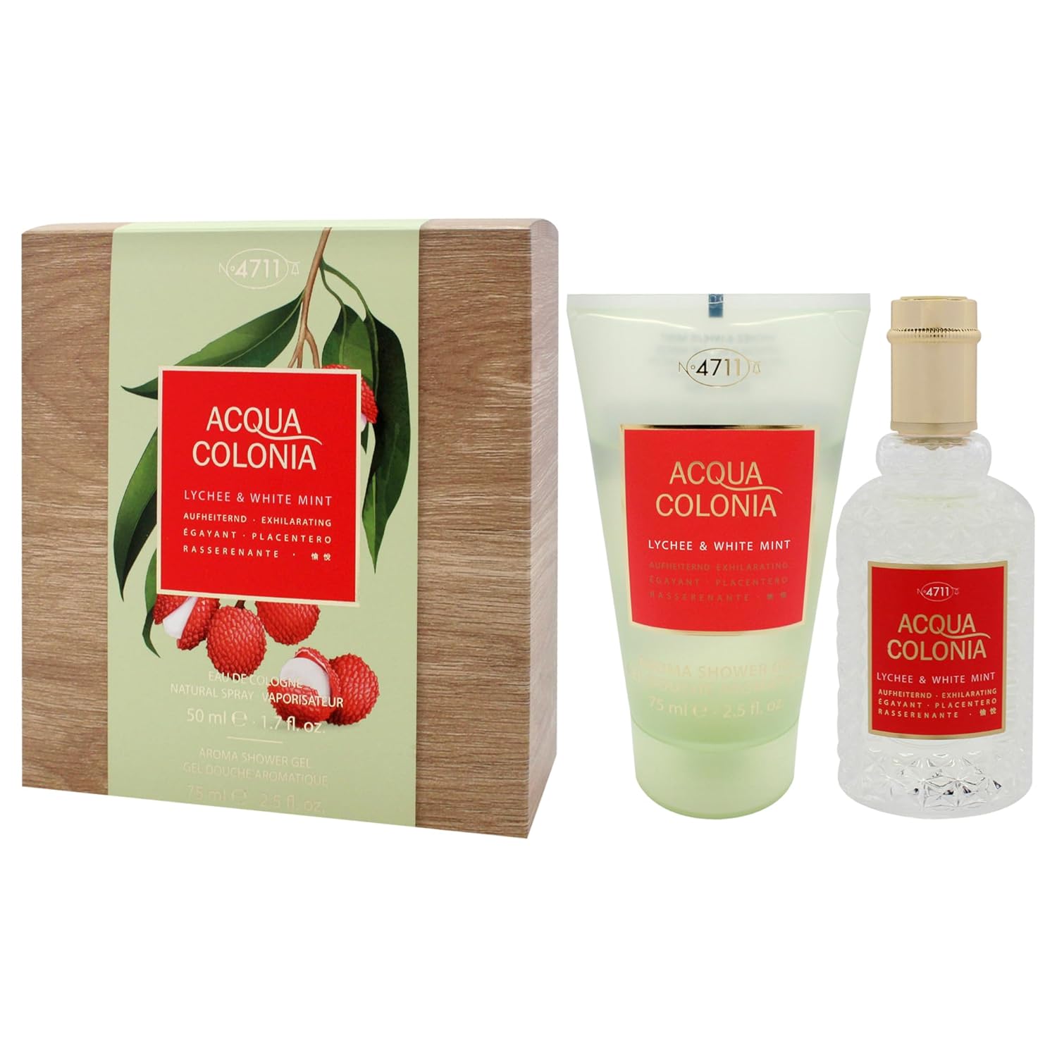 Muelhens 4711 Acqua Colonia Lychee And White Mint For Unisex - 2 Pc Gift Set 1.7Oz Edc Spray, 2.5Oz Shower Gel