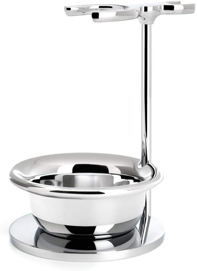 COMPLETE SET: This eye-catching, timeless shaving kit includes both a chrome stand for displaying the brush and razor along with a chrome bowl for shave cream or soap. Makes a fantastic starter kit and gift set for anyone