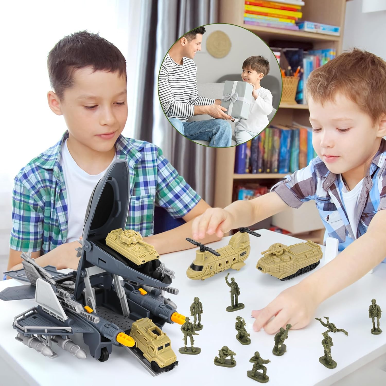 Multi-Purpose Armed Fighter Toy Jet β Battle Military Airplane Playset with Missile Trucks, Helicopter & Army Men for Kids (Ages 3+)