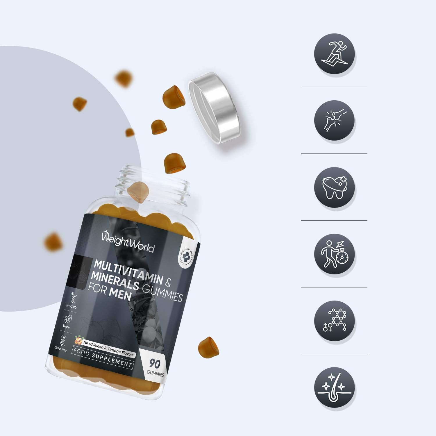 Multivitamin Gummies For Men | 90 Vegan Gummies | With Added Herbal Extracts Like Maca, Panax Ginseng | 8 Multivitamins And 4 Minerals | Mixed Peach & Orange Flavour | Gluten-Free & Non-Gmo