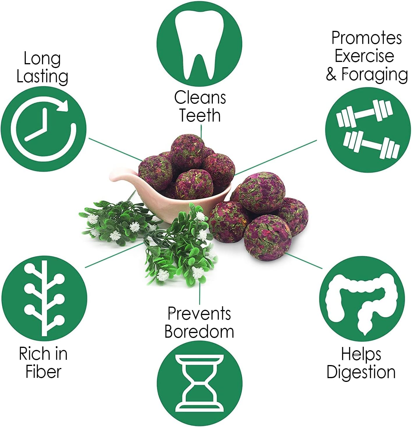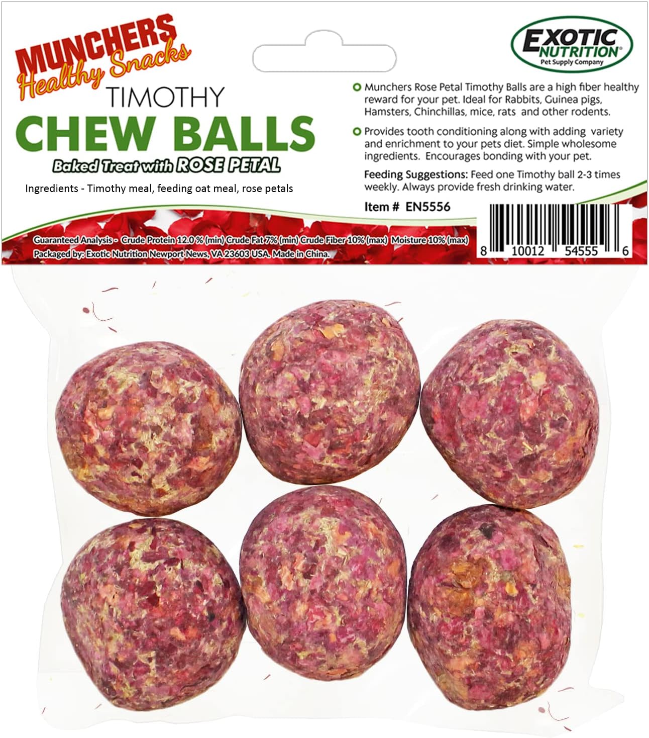 Munchers Rose Petals & Timothy Chew Balls - Healthy Natural Hay & Flower Chew Treat - Guinea Pigs, Hamsters, Rabbits, Degus, Prairie Dogs, Chinchillas, Squirrels, Opossums, Rats, Gerbils & Small Pets