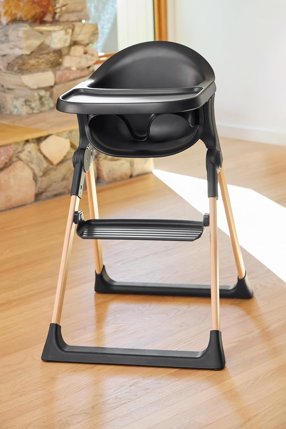Munchkin® Float™ Foldable Baby And Toddler High Chair - Easy Clean, Compact And Lightweight, Great For Small Spaces, Black With Wooden Legs