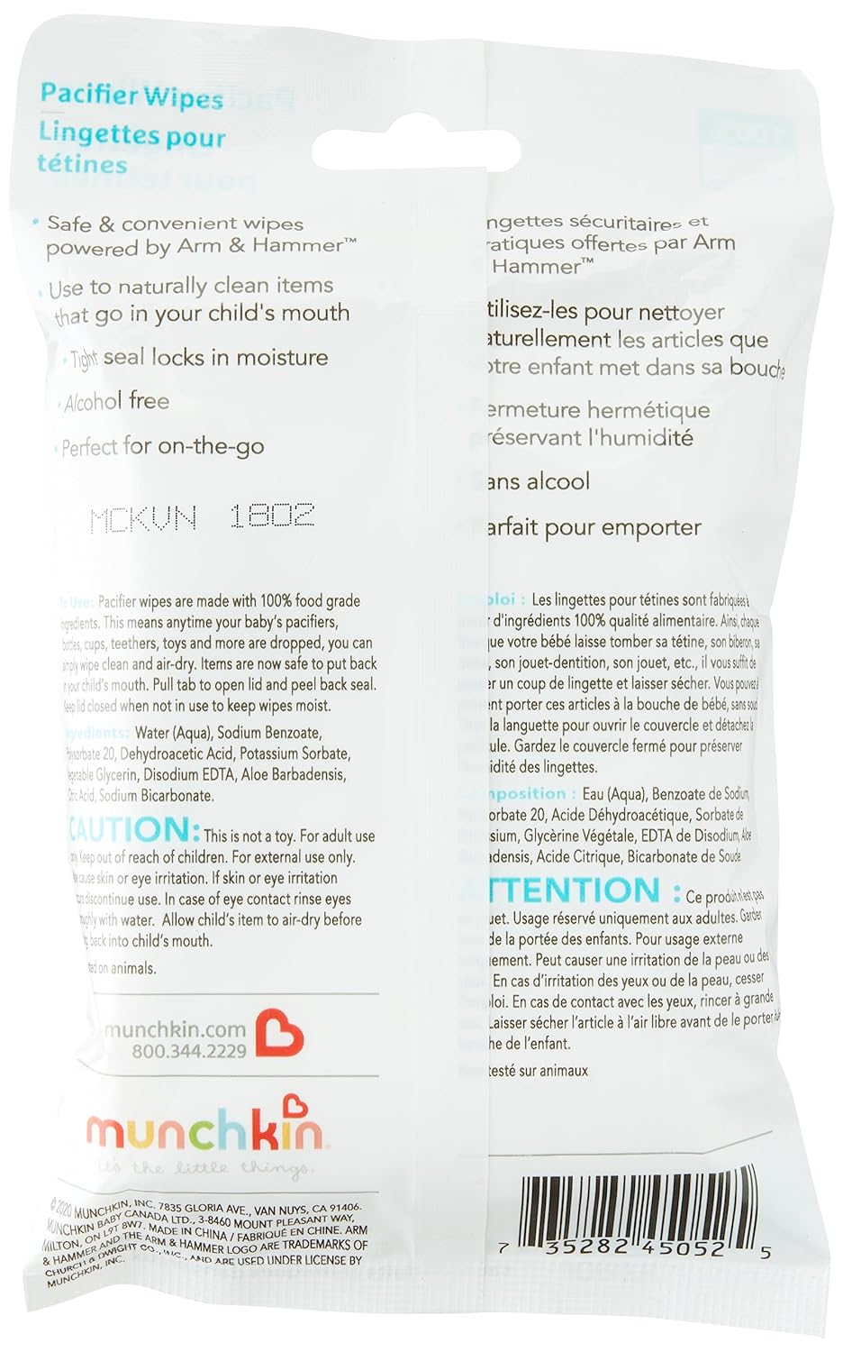 Munchkin® Arm & Hammer Pacifier Wipes - Safely Cleans Baby and Toddler Essentials, 1 Pack, 36 Wipes