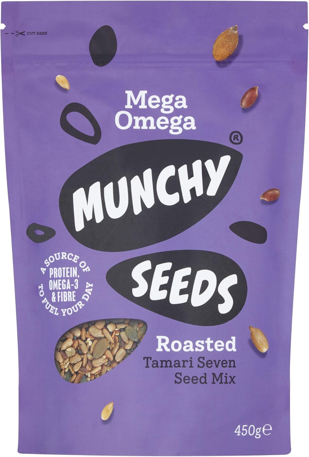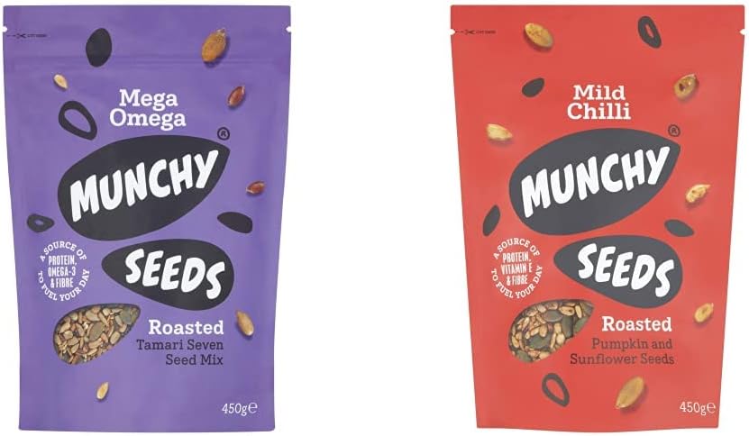 Munchy Seeds Mega Omega, 7-Seed Mix With Sunflower, Pumpkin, And Hemp, Protein Snack, Plant-Based Fibre & Vitamin E - 450G Mega Pack & Mild Chilli Sunflower, Pumpkin, Protein Snack - 450G