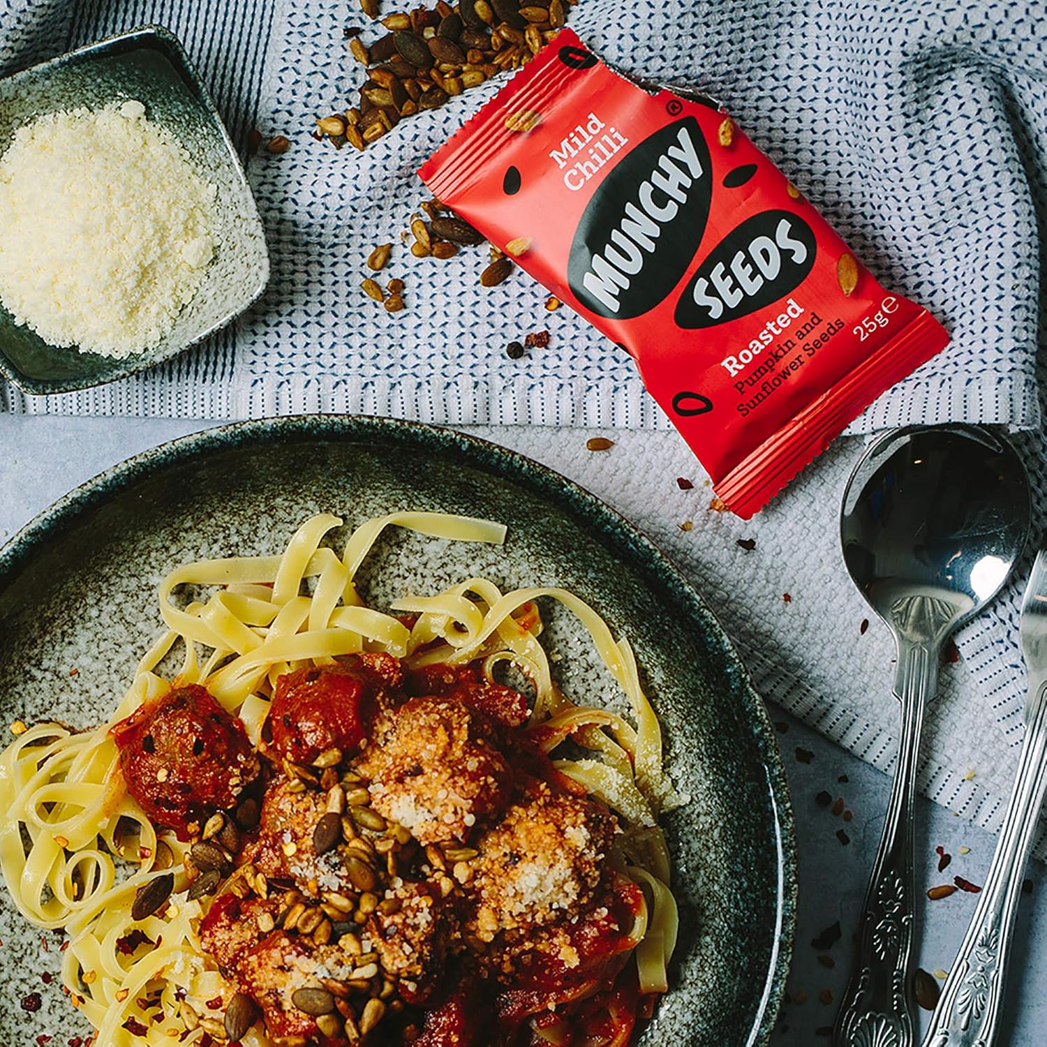 Munchy Seeds Mild Chilli Sunflower, Pumpkin, Protein Snack, Seed Mix For Eating, Plant-Based Source Of Protein, Fibre & Vitamin E, Mildly Spicy Flavour, Vegan Snacks For Kids & Adults - 125G