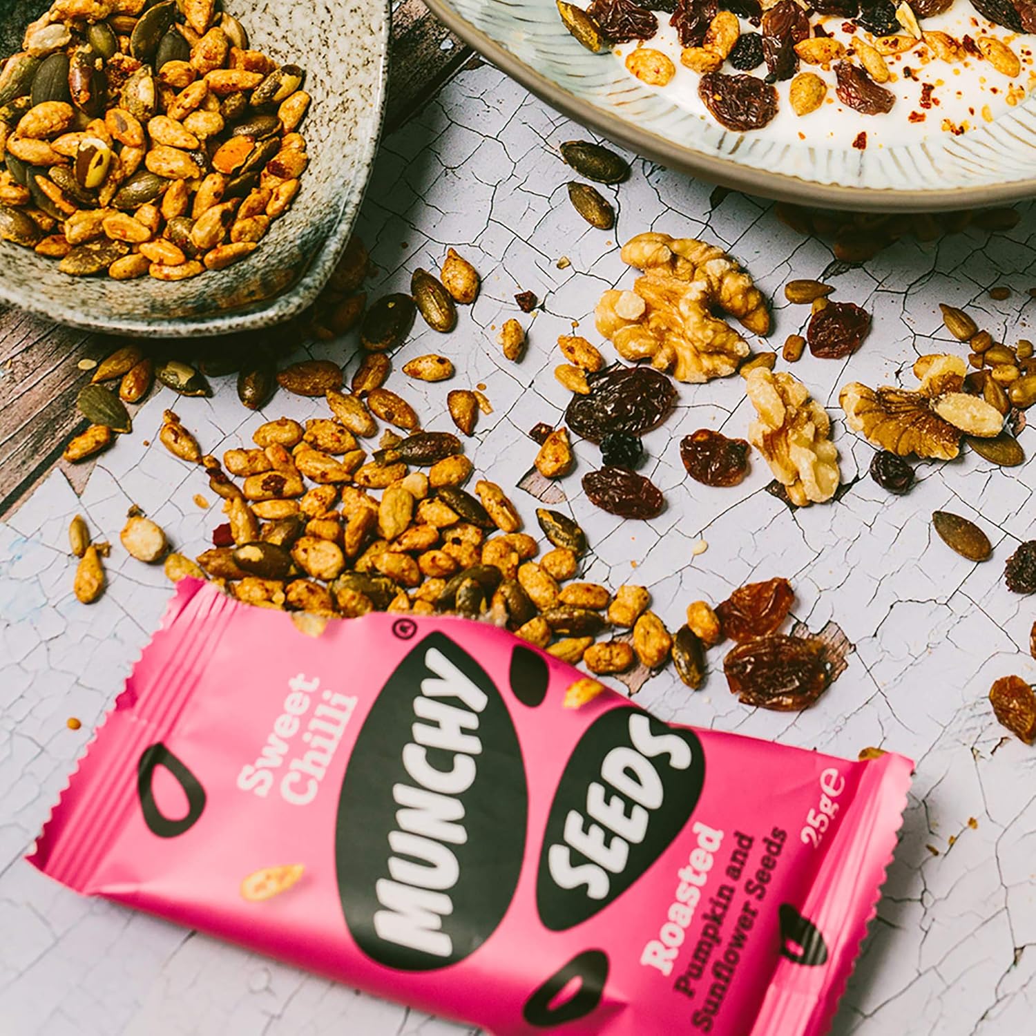 Munchy Seeds Sweet Chilli, Sunflower, Pumpkin, Wheat & Gluten-Free, Plant-Based Fibre & Vitamin E, To Eat Or Add To Salads Or Stir Fry, Vegan Protein Snack For Kids And Adults - 125G Sharing Pack
