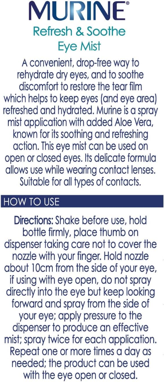 Murine Refresh & Soothe Eye Mist That Soothe, Hydrate And Refresh Dry Or Irritated Eyes, New Formulation,10Ml