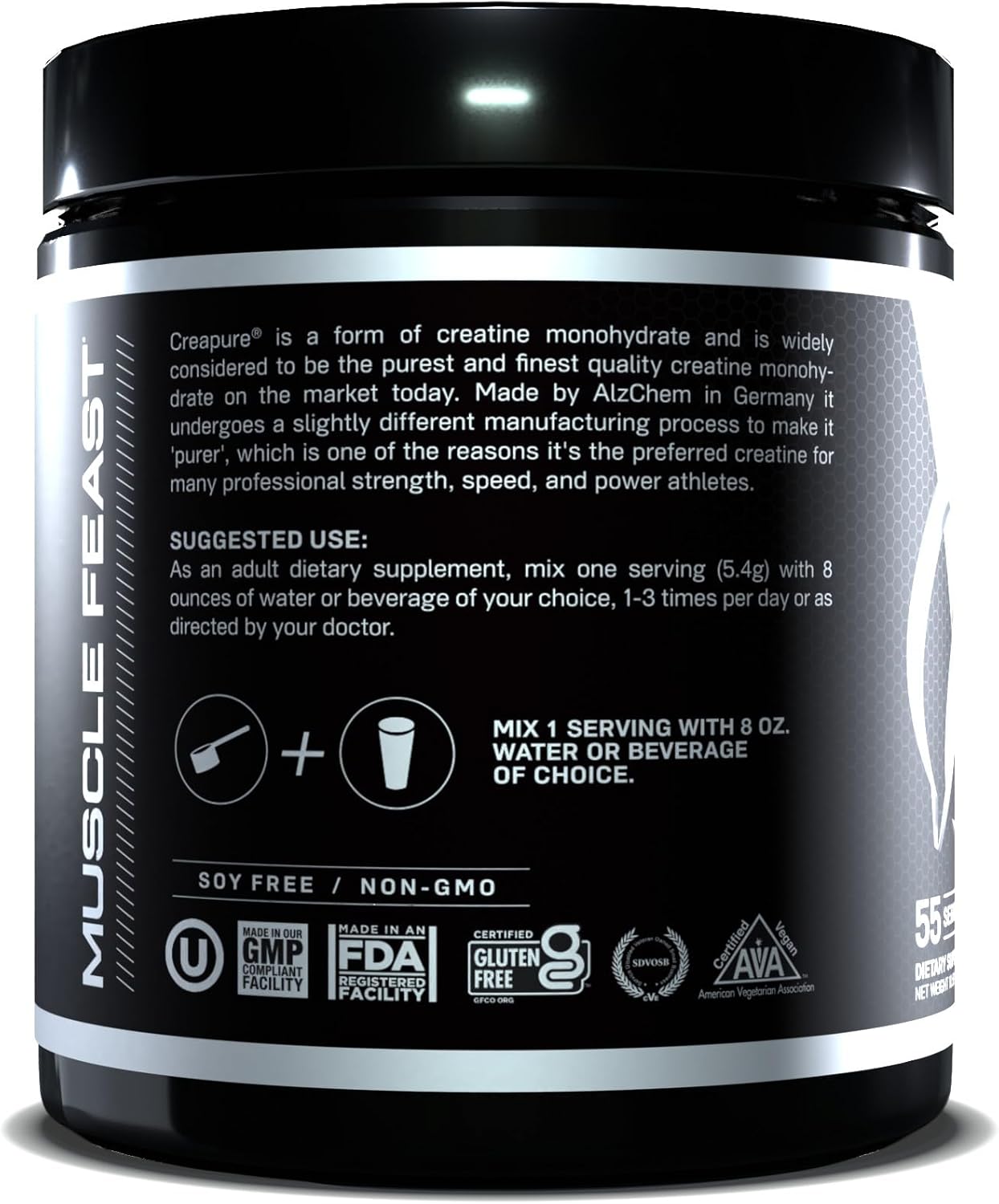 Muscle Feast Creapure Creatine Monohydrate Powder, Vegan Keto Friendly Gluten-Free, Mass Gainer, Muscle Recovery Supplement And Best Creatine For Muscle Growth, Unflavored, 300G