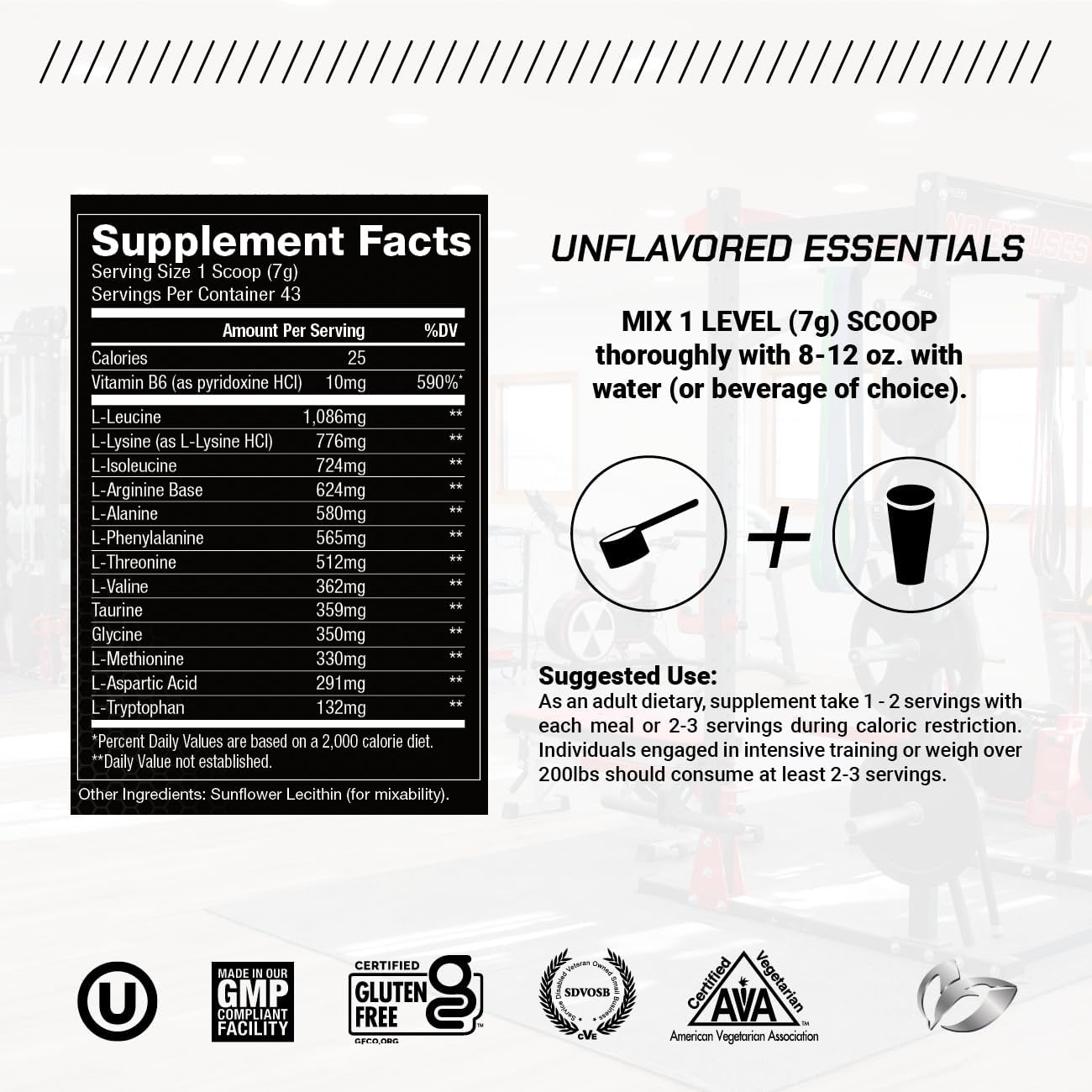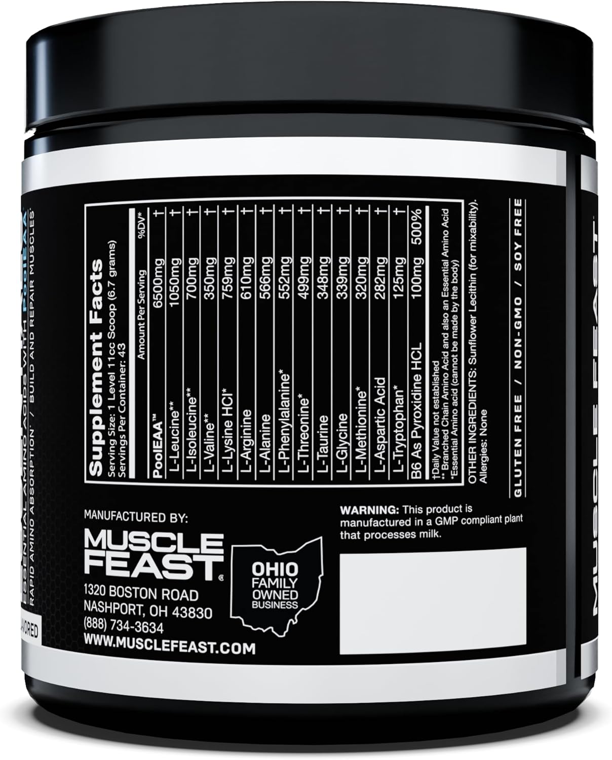 Muscle Feast Vegan Essential Amino Acid Powder Post Workout Recovery And Intra-Training Drink, Unflavored, 300G