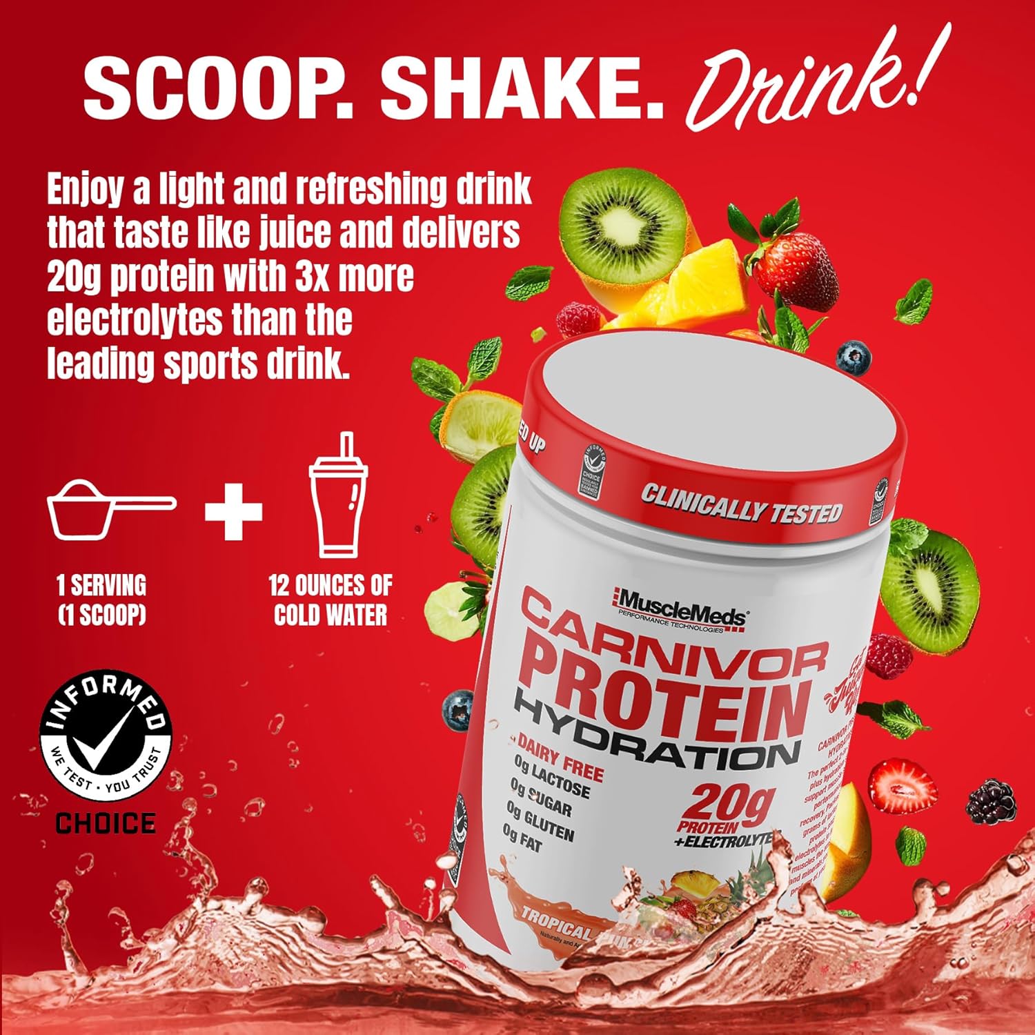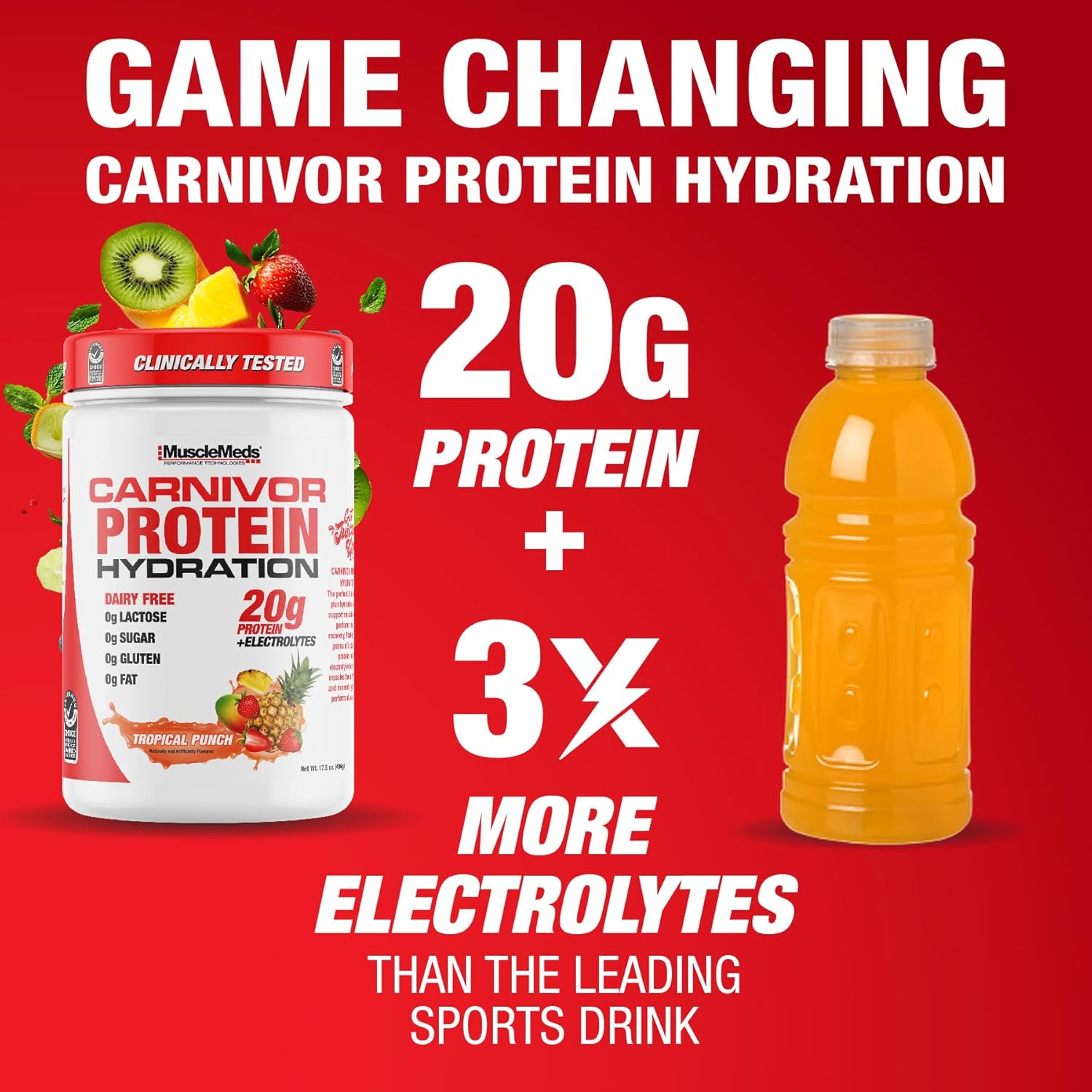 Musclemeds Carnivor Protein Hydration Drink Powder, 20G Refreshing Protein Isolate, Lactose Free, Sugar Free, Electrolytes, Muscle Building, Recovery, Halal Certified, Tropical Punch, 20 Serve