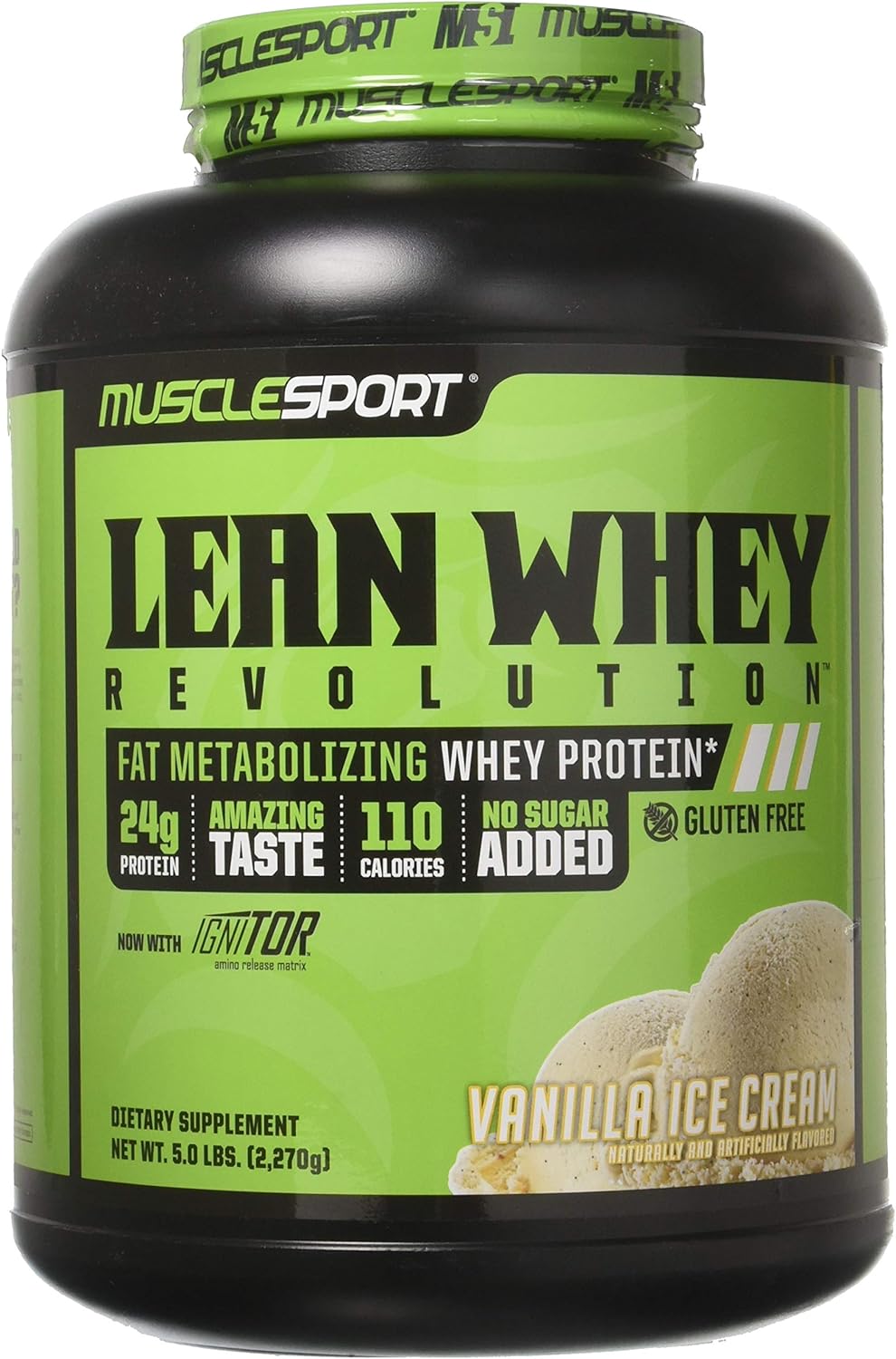 DESCRIPTION : Musclesport Lean Whey Revolution™ Protein Powder - Whey Protein Isolate - Low Calorie, Low Carb, Low Fat, Incredible Flavors - 25g Protein per Scoop - 5lb Vanilla Ice Cream
