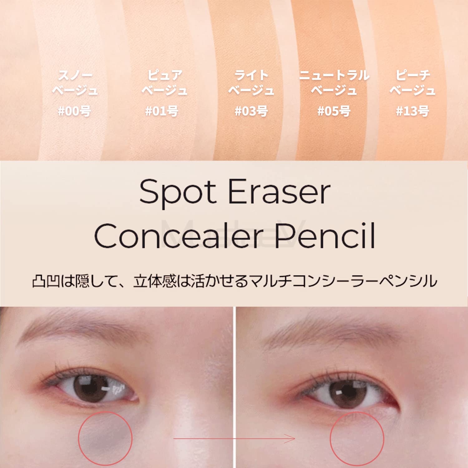 ABOUT THE PRODUCT: 1 > Covering imperfections, pimples, scars, etc 2 > Covering dark circles 3 > Wanting clean and polished makeupThe concealer pencil is a must have item! Experience the MustaeV SPOT ERASER CONCEALER PENCIL that covers even small imperfections one by one, for perfect makeup. Apply a thin coat of foundation and leave the rest to the SPOT ERASER CONCEALER PENCIL. For those who do not wear foundation, simply apply the concealer to cover the imperfection