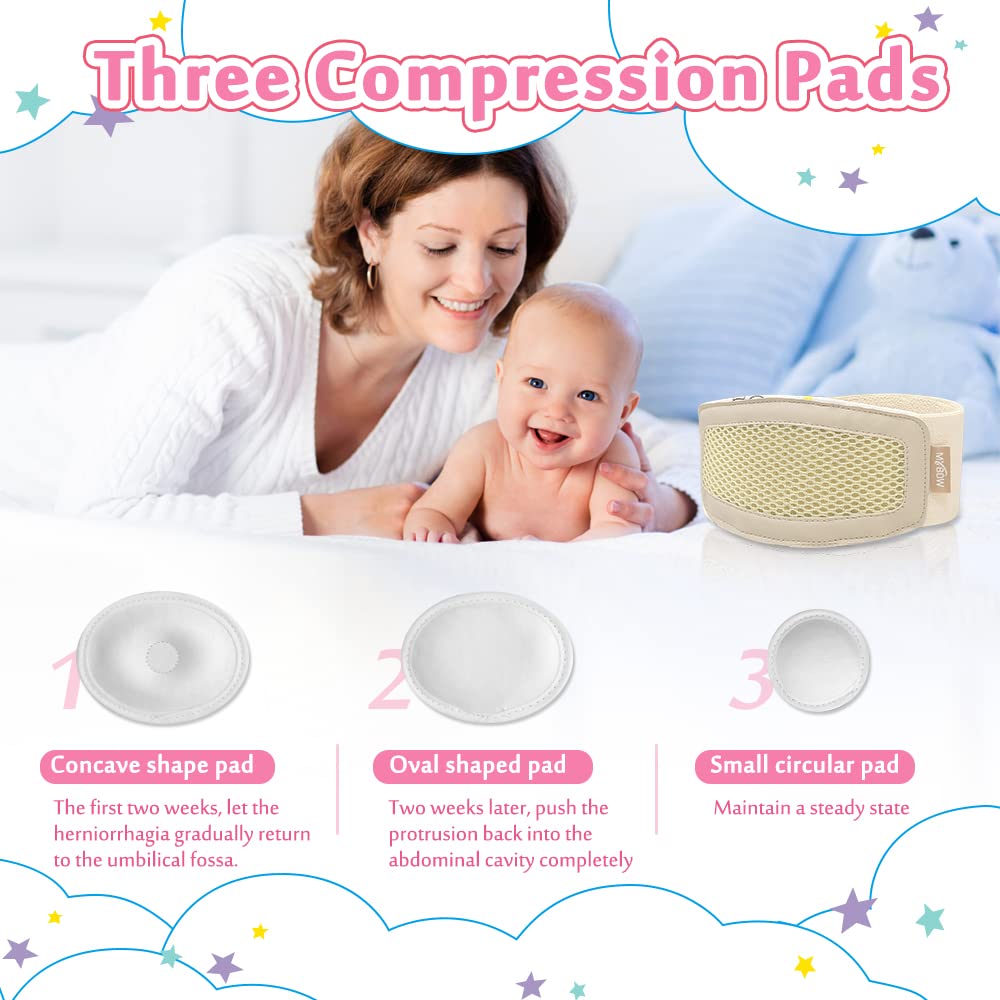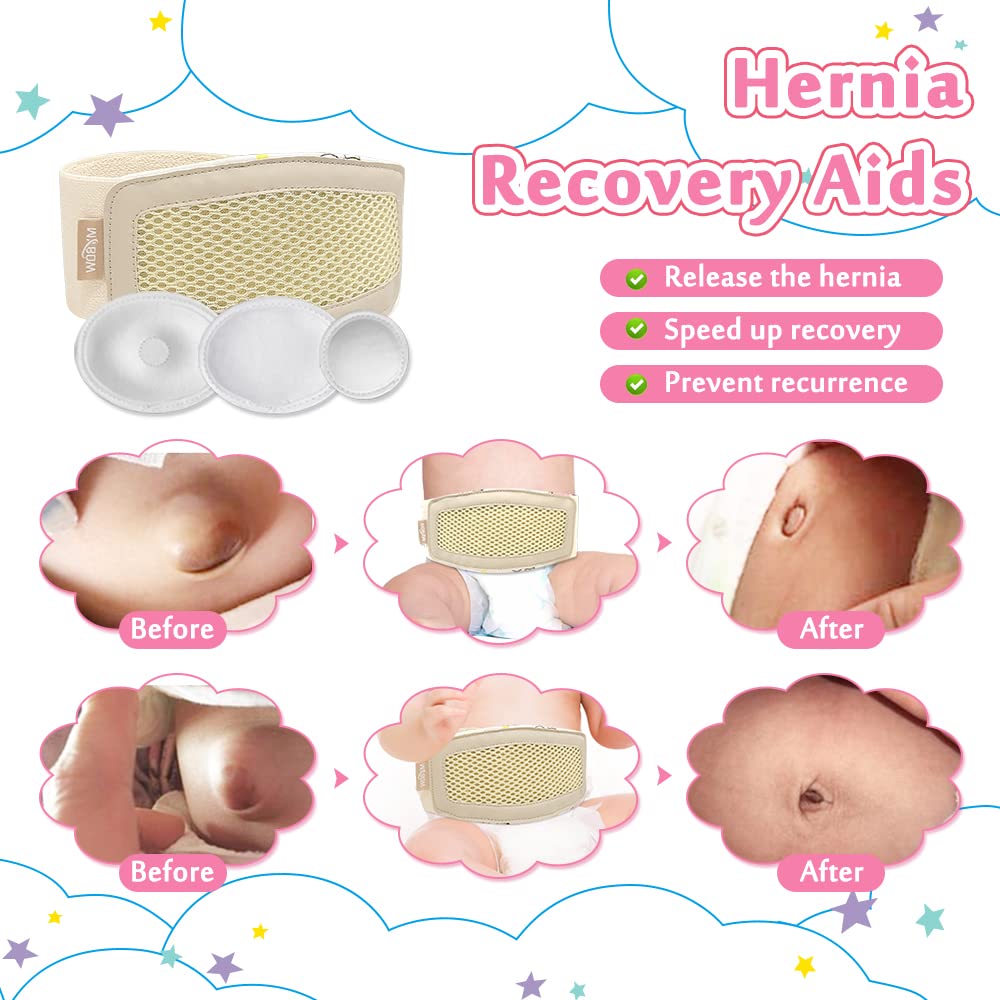 Baby Umbilical Hernia BeltHelps the baby recover from hernia and relieves the baby's discomfort. Gentle pressure is provided directly through the cotton pad to prevent the hernia sac from descending and becoming incarcerated, and effectively prevents recurrence10Comfortable CareMade of high-quality cotton, it is soft and comfortable to the touch, skin-friendly and non-irritating, and can be worn by babies for a long time. The surface adopts a mesh breathable design to absorb moisture and sweat, keeping the skin dry even in hot summer10Free AdjustmentVelcro design and elastic waistband, which can be flexibly adjusted according to the baby's waist. The belly binder is suitable for baby waists of 14-18 inches. Please measure the size before purchasing10Scientific DesignEquipped with three compression pads, suitable for different stages: Concave Pad - used in the first 5 days to prevent hernia from protruding. Large oval pad - use after 15 days to promote recovery. Small Pad - can be used to dry the baby's belly button after bathing or to prevent recurrence in the late recovery period10Usage TipsThe package contains a belly band and 3 compression pads. Newborns can only lace up after the umbilical wound has completely healed, and this product should only be used under medical supervision
