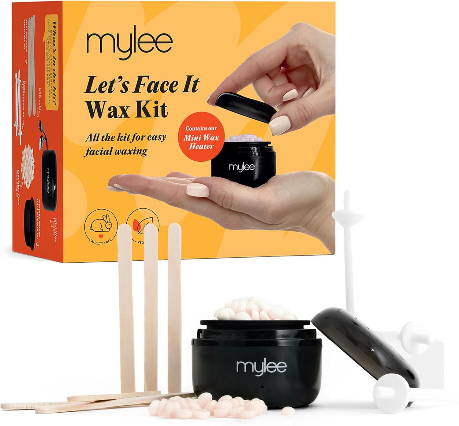 Mylee Let’S Face It Wax Kit – Professional Facial Waxing Kit With Black Mini Heater, 50G Precision Face Wax Beads (Peach & Chamomile), Wooden Waxing Spatulas, Ear & Nose Wax Applicators & Usb Cable