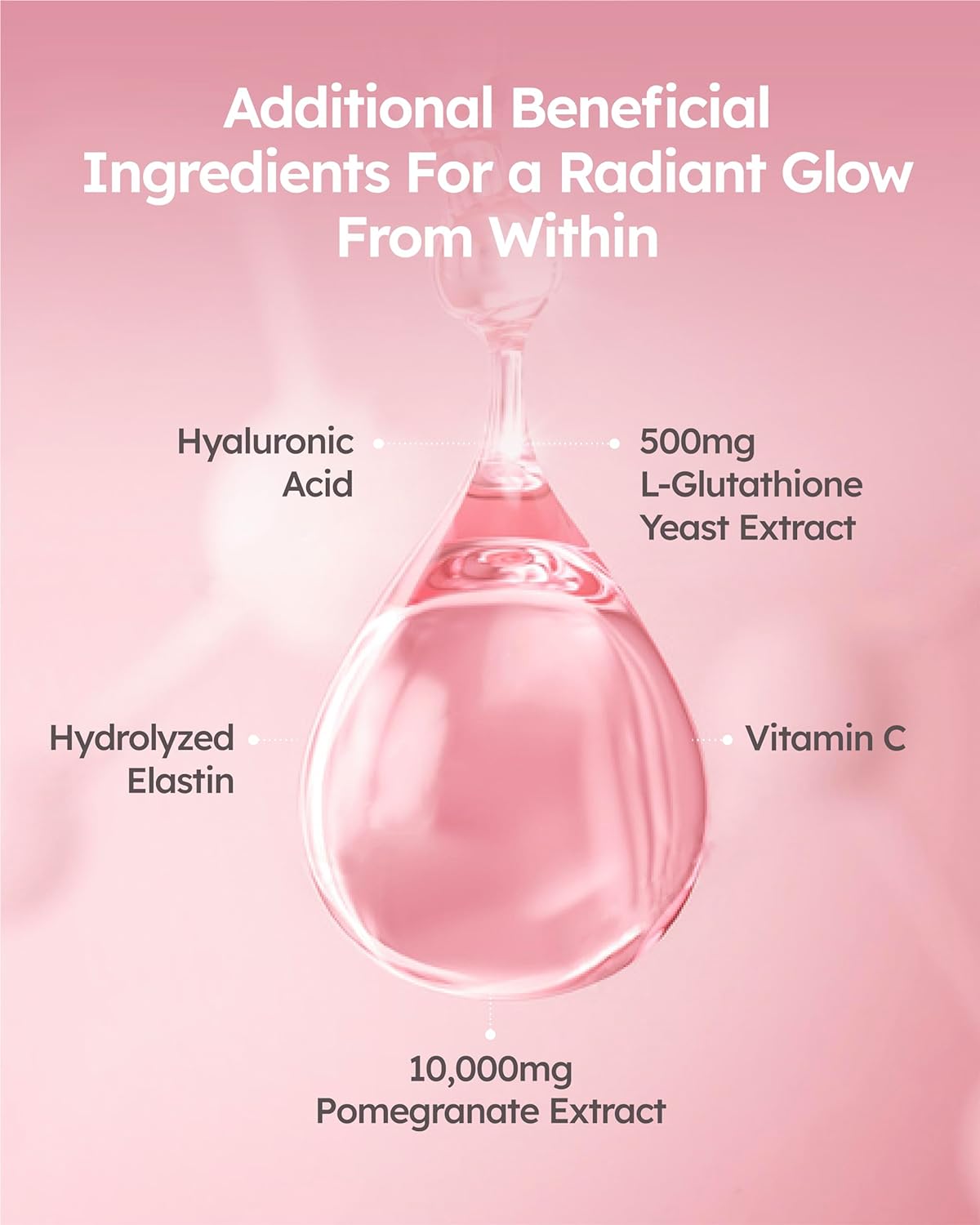 POWERFU INFUSION - Infused with 10,000mg of pomegranate extract, our Glutathione Collagen jelly offers potent benefits, preventing premature aging and promoting skin vitality. Coupled with vitamin C, hyaluronic acid, and elastin, this unique blend enhances skin health and boosts collagen production