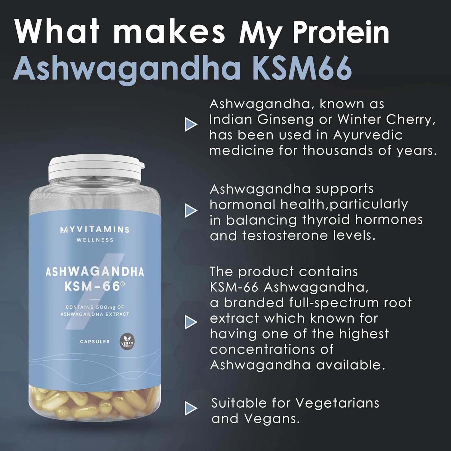 Myprotein Ashwagandha Ksm66 Capsules, Full-Spectrum Root Extract, High Potency, Natural Stress Relief, Enhanced Mood, Immune Support, Non-Gmo, Vegan - 90 Capsules