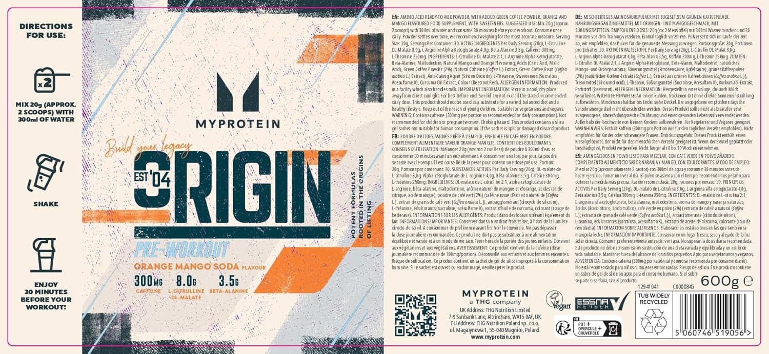 Myprotein Pre Workout - Passionfruit Twister Flavour - 18 Servings Of Dry Scoop Pre Workout Powder - 150Mg Caffeine, 4G Citrulline Malate And 1.8G Beta Alanine - Boost Energy & Performance