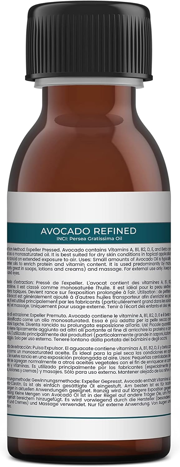 Mystic Moments | Avocado Refined Carrier Oil 125Ml - Pure & Natural Oil Perfect For Hair, Face, Nails, Aromatherapy, Massage And Oil Dilution Vegan Gmo Free