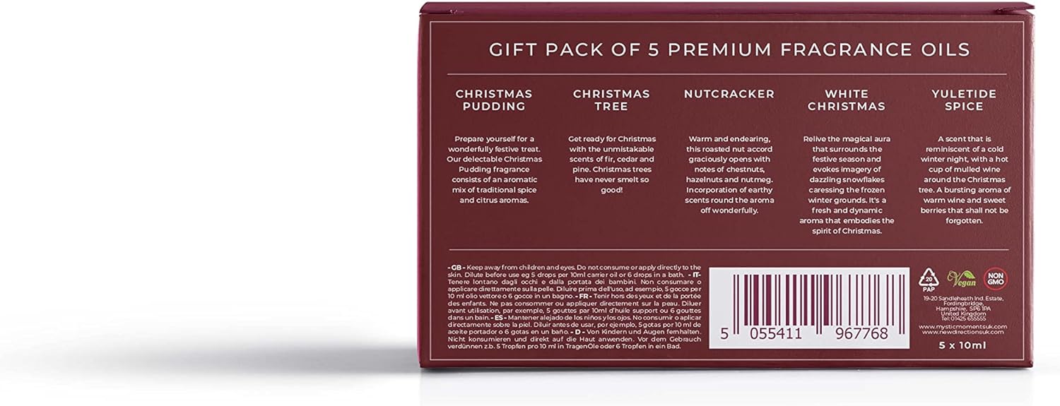 Mystic Moments | Christmas Fragrance Oil Gift Starter Pack 5X10Ml | Christmas Pudding, Christmas Tree, Nutcracker, White Christmas, Yuletide Spice | Perfect As A Gift