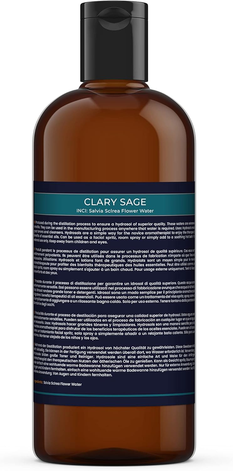 Clary Sage Hydrosol Floral Water 1 Litre (2 x 500ml Bottles)