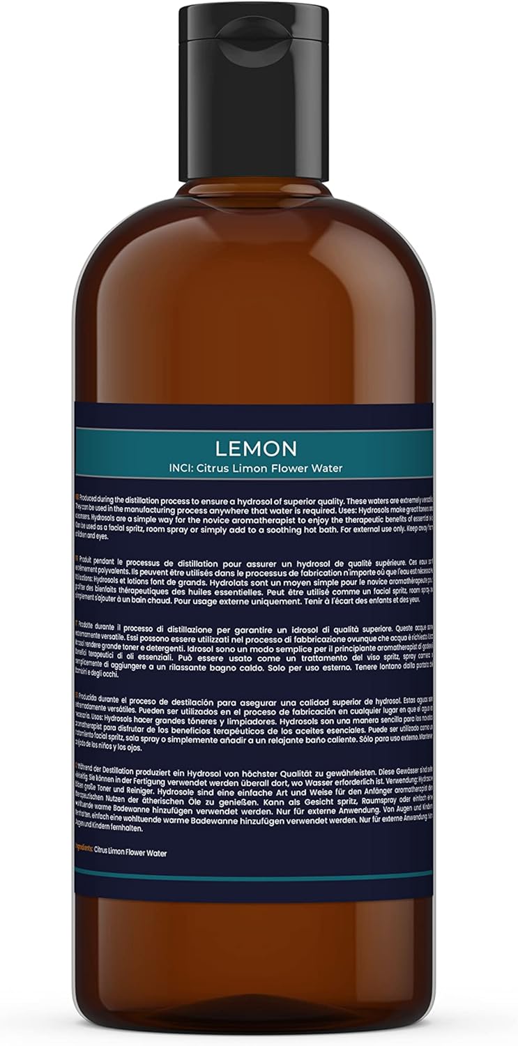 Mystic Moments | Lemon Natural Hydrosol Floral Water 500Ml | Perfect For Skin, Face, Body & Homemade Beauty Products Vegan Gmo Free