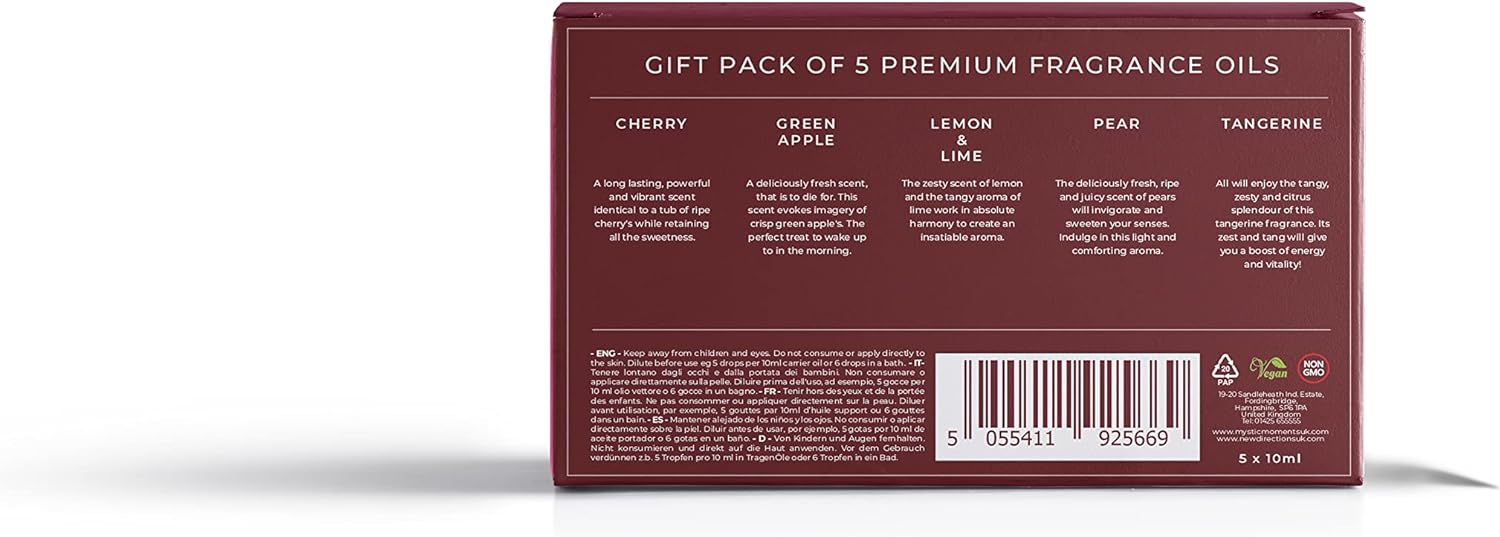 Mystic Moments | Orchard Fruits Fragrance Oil Gift Starter Pack 5X10Ml | Cherry, Green Apple, Lemon-Lime, Pear, Tangerine | Perfect As A Gift