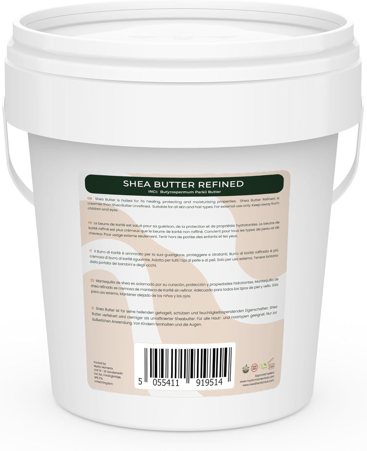 Product Description Shea Butter Refined Organic - 100% Pure and Natural - 1Kg INCI: Butyrospermum Parkii Butter Description: Shea Butter is extracted from the shea nut. After refinement it has a very slight yellow colour and almost no odour, but the applications remain the same as in its unrefined state. Shea Butter is hailed for its healing, protecting and moisturising properties. Rich in cinnamon acid, it reputedly protects the skin from UV rays and therefore is often included in skin care products for after sun care. The first choice in natural skin care and fine body care products, this butter forms a breathable, water-resistant film and is the leading natural product for moisturising. Uses: Typically used in soaps, lip balms, body and massage butters, body and hand lotions, shaving preparations, facial moisturizers and bath oils. Skin Type: All skin and hair types but particularly for dry, mature skin and hair Country of Origin: Ghana Product Type: 100% Pure Butter Recommended Usage: It is oil soluble (not water soluble) and is usually incorporated via the oil phase when preparing emulsions. It has no known incompatibilities. Storage: It should be stored in a cool dark place and has a shelf-life of up to 24 months from opening when stored properly. Important Note: For external use only. Keep away from children and eyes. The information provided is for educational purposes only. The appearance of this butter may slightly vary from batch to batch due to natural ingredients present in this product. Please Note: As with any manufacturing process, Mystic Moments encourages small, lab scale manufacturing for evaluation purposes prior to full commercial manufacturing. Safety Warning Keep away from children and eyes