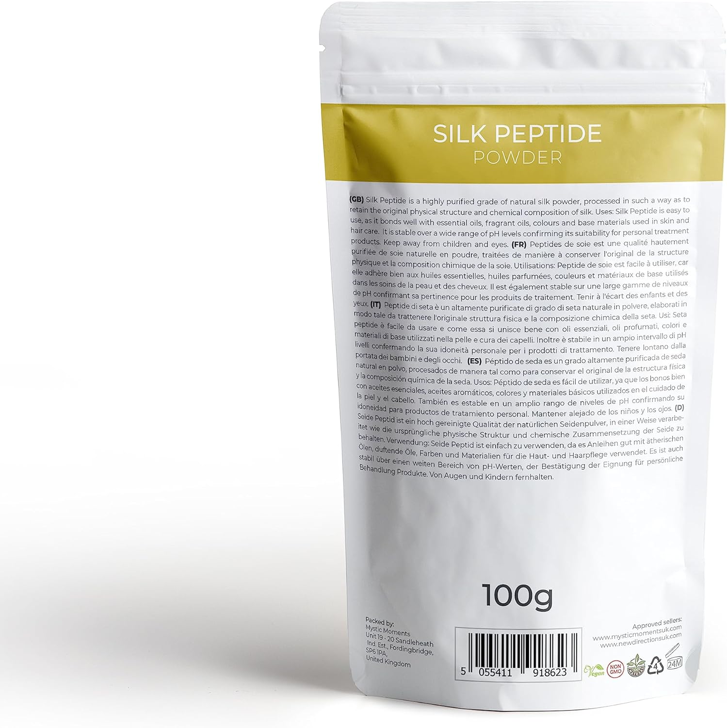 Mystic Moments | Silk Peptide Powder | 100% Natural Silk Protein | Moisture-Balancing Cosmetic Ingredient | For Skin & Hair Care | Bonds With Oils, Colours & Actives | Stable Across Ph Ranges | 25G