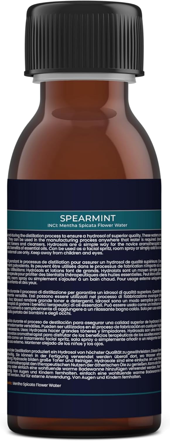 Mystic Moments | Spearmint Natural Hydrosol Floral Water 125Ml | Perfect For Skin, Face, Body & Homemade Beauty Products Vegan Gmo Free