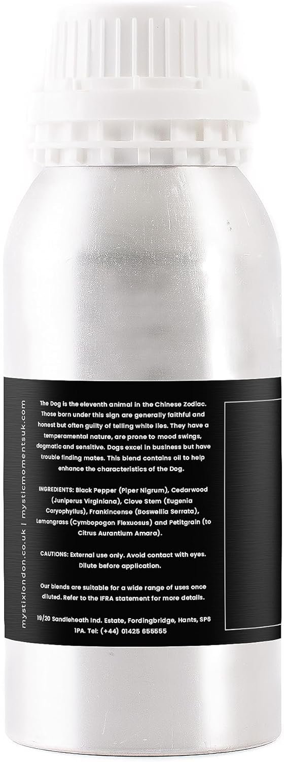 Mystix London | | Dog Chinese Zodiac Essential Oil Blend 500G| 100% Pure & Natural | Aromatherapy Oil | Black Pepper, Cedarwood, Clove, Frankincense, Lemongrass, Petitgrain | Vegan, Gmo Free