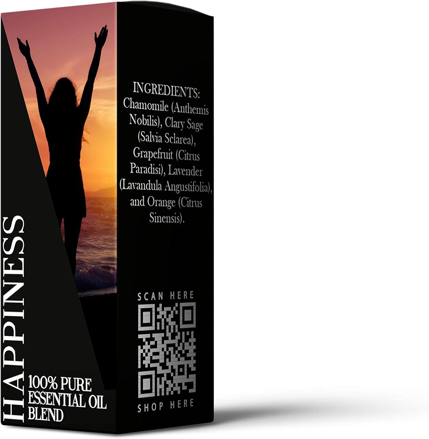 Mystix London | Happiness Essential Oil Blend 10Ml | Chamomile | Clary Sage | Grapefruit | Lavender | Orange | Aromatherapy Oil | Citrus Floral Fragrance | For Diffusers & Massage | Vegan, Gmo Free