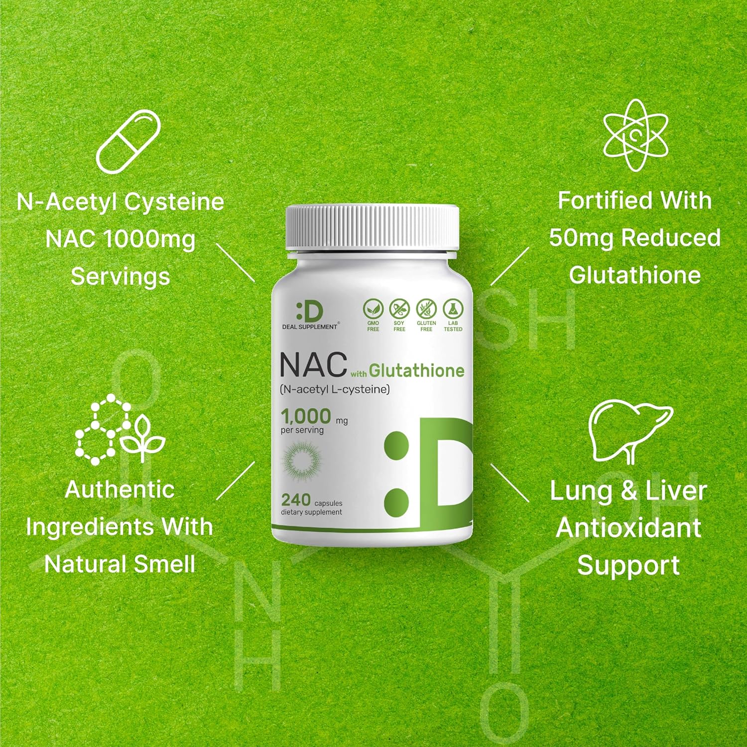 Special Features β 1,000*Mg Servings Of Purified N-Acetyl Cysteine Nac, Fortified With Reduced Glutathione Antioxidant To Promote High Active Properties And Better Overall Bioavailability. Made With Real Nac That May Produce A Natural Potent Smell