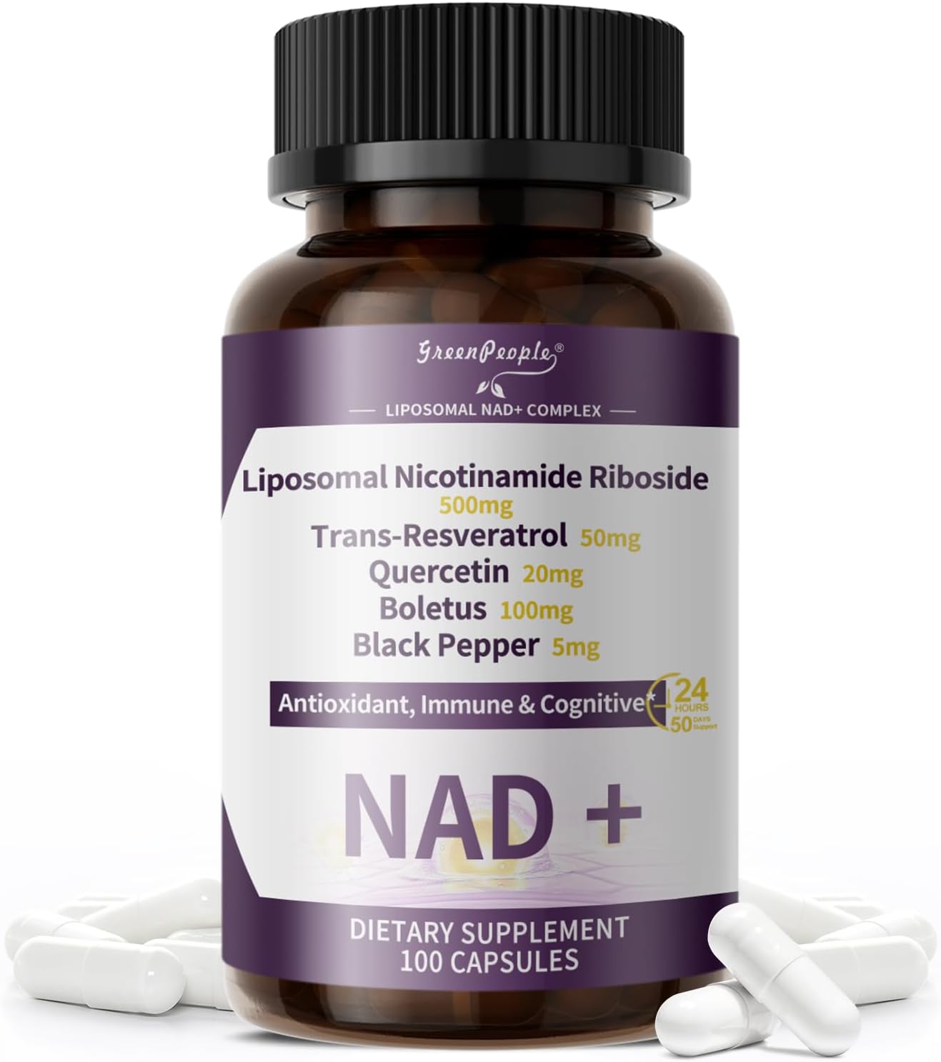 Liposomal NR (Nad supplement 500mg): High content Nicotinamide Riboside Chloride (NAD Precursor) adopts liposome encapsulation technology, combined with a scientific content of 500MG, to safely and stably support health cellular energy metabolism and maintain NAD+levels, optimizing absorption and utilization Scientific NR cell empowerment: Nicotinamide Riboside is used as a precursor component for NAD Plus Boosting. Scientific research has shown that Nicotinamide Riboside can be directly converted to NAD+in vivo, saving rate limiting enzyme resources and supporting cell energy metabolism faster through a dedicated conversion pathway. It is more stable than directly supplementing NAD+(NAD+is easily degraded orally) Scientific support for female cell vitality:GREENTOPLE NAD capsules provide precursors to support healthy NAD+levels, synergizing with resveratrol to increase absorption by three times. This is a key coenzyme for cellular energy production and critical metabolic processes. Activate anti-aging related proteins (Sirtuins) involved in cell repair. Plays a role in regulating neural functions related to day night regulation, supporting the overall health of active women 10X bioavailability: Advanced Liposomal technology increasing 10X bioavailability to help optimize key active NR, Resveratrol, Quercetin in the formula?Protecting NR molecules by optimizing delivery efficiency through the digestive system Maximize nutrient supplementation 5-in-1 scientific formula: integrating NR, Resveratrol, Quercetin, mushroom extract, and Piperine, with synergistic effects between ingredients, aimed at providing multidimensional support for cell health repair, dual antioxidant protection, energy levels, immune balance, and skin health Pure and efficient formula: GREENPEOPLE strictly screens raw materials, sugar free and gluten free, without adding any artificial colors, flavors, preservatives, pure and natural, suitable for vegetarians , Safe and reliable Quality assurance?GREENPEOPLE Provide satisfactory after-sales service. If you have any questions about the product, please feel free to contact us and we will be dedicated to serving you Liposomal NR (Nad supplement 500mg): High content Nicotinamide Riboside Chloride (NAD Precursor) adopts liposome encapsulation technology, combined with a scientific content of 500MG, to safely and stably support health cellular energy metabolism and maintain NAD+levels, optimizing absorption and utilization