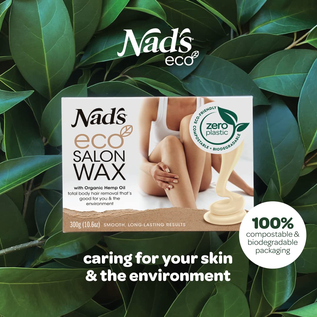 About this item Professional salon quality microwavable hard wax – no strips required. Nad's Eco Salon hard wax kit is plastic free, compostable, biodegradable tub and wooden spatula, 100% recyclable packaging and vegan formula. Ideal for full body hair removal inlcuding chest, underarms, stomach, arms, legs, back, bikini and brazilian, Hypoallergenic & Dermatologically tested. Contains no parabens, colourants or perfume. Nad's are PETA certified, cruelty free wax. Formulated with organic hemp seed oil to calm & soothe skin. Contains 300g of eco wax and 1 x biodegradeable wooden spatula. The eco-friendly microwaveable hard wax is not only kind and gentle on your skin but works perfectly to remove even the coarsest, shortest hair for long-lasting smooth results! See more product details,Professional salon quality microwavable hard wax – no strips required,Nad's Eco Salon hard wax kit is plastic free, compostable, biodegradable tub and wooden spatula, 100% recyclable packaging and vegan formula,Ideal for full body hair removal inlcuding chest, underarms, stomach, arms, legs, back, bikini and brazilian, Hypoallergenic & Dermatologically tested. Contains no parabens, colourants or perfume. Nad's are PETA certified, cruelty free wax,Formulated with organic hemp seed oil to calm & soothe skin. Contains 300g of eco wax and 1 x biodegradeable wooden spatula,The eco-friendly microwaveable hard wax is not only kind and gentle on your skin but works perfectly to remove even the coarsest, shortest hair for long-lasting smooth results!