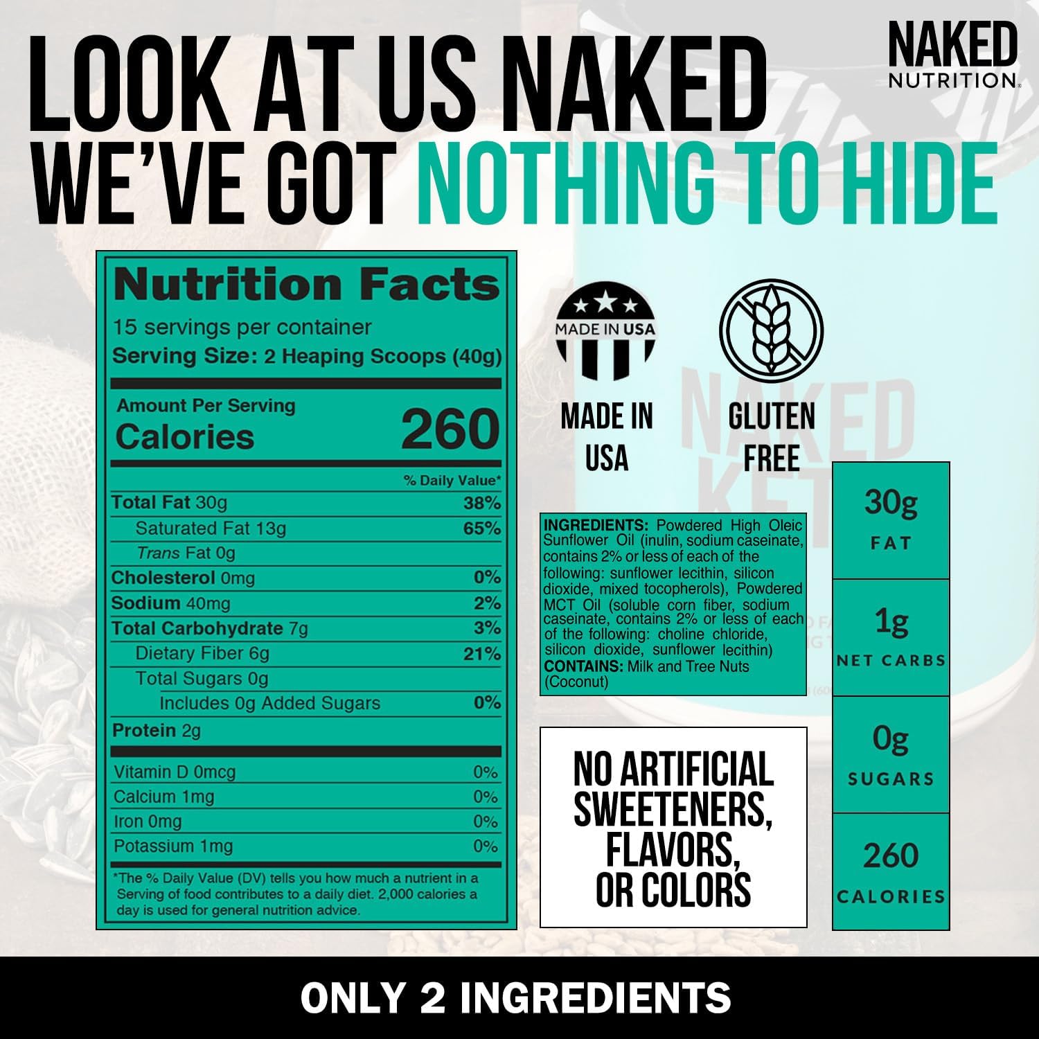 Only 2 Ingredients: High Oleic Powdered Sunflower Oil And Powdered Mct Oil With Zero Additives. Naked Keto Contains No Artificial Flavors, Sweeteners, Or Colors And Is Gmo-Free, Gluten-Free And Soy-Free