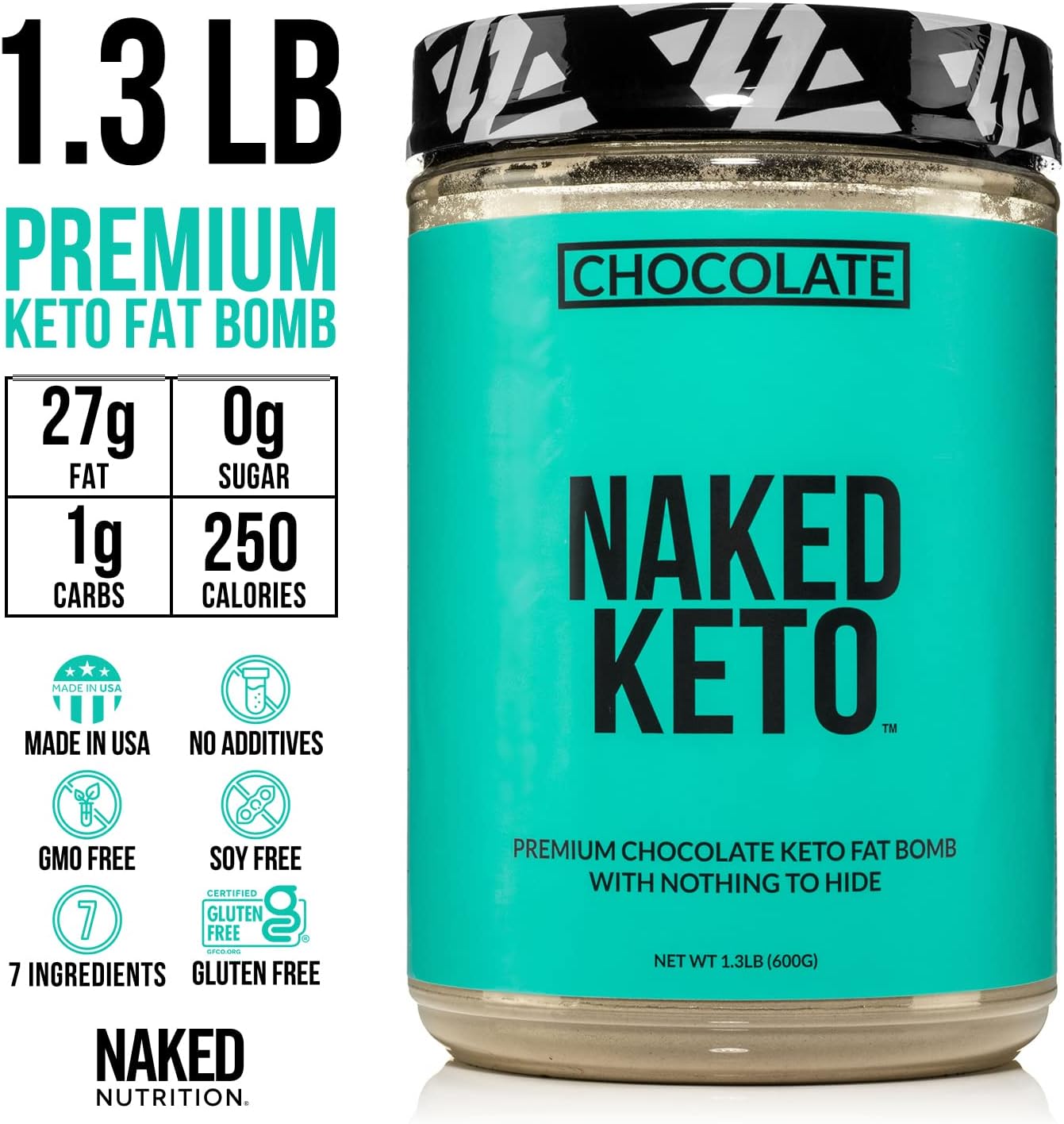 ONLY 7 INGREDIENTS: High Oleic Powdered Sunflower Oil, Powdered MCT Oil, Cacao, Sea Salt, Vanilla Extract, Stevia, and Monk Fruit. Chocolate Naked Keto contains no artificial sweeteners, flavors, or colors, and is GMO-Free, Gluten-Free and Soy-FreePREMIUM INGREDIENTS: To ensure the best quality of our ingredients, both our MCT Oil and High Oleic Sunflower Oil are made in the USA. Our keto fat bomb powder is the perfect supplement to support a low-carb dietHEALTH BENEFITS: Our keto powder can work to improve your health by providing healthy fats for your body to use as energy. This will help you maintain a low carb lifestyle in a healthy wayOPTIMUM NUTRITION: 27g of fat, 1g of net carbs, 0g of sugars, and 250 calories per serving. Naked Keto contains no unnecessary ingredientsTHE IDEAL KETO SUPPLEMENT: Our keto bomb powder makes for the ideal keto supplement for those on a low-carb diet. You can easily create the best fat bomb by adding two scoops of Naked Keto to your favorite beverage