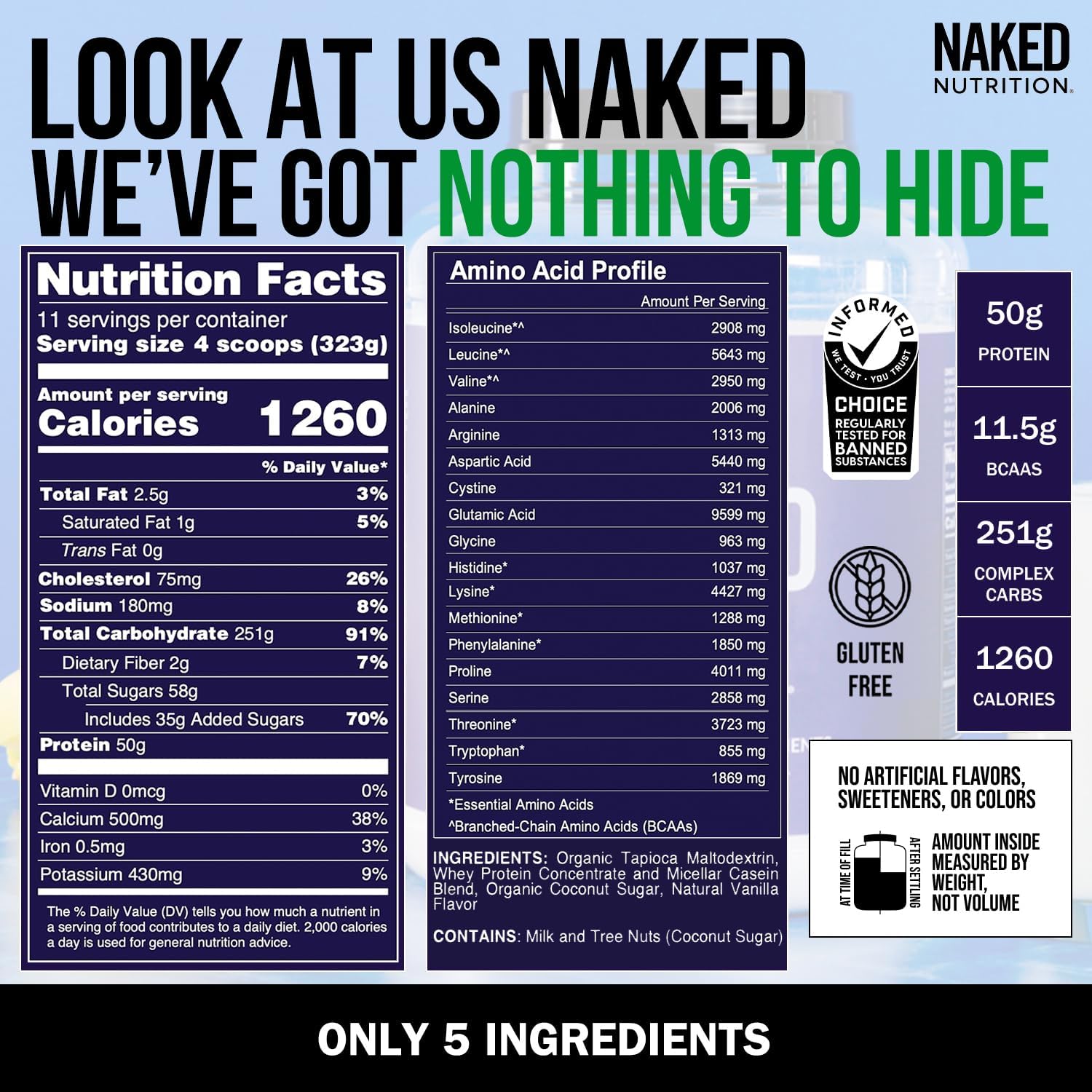 Naked Vanilla Mass - All Natural Vanilla Weight Gainer Protein Powder - 8Lb Bulk, Gmo Free, Gluten Free & Soy Free, No Artificial Ingredients - 1,260 Calories - 11 Servings