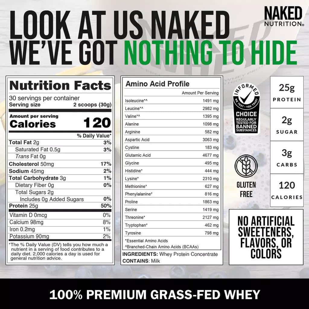 Only One Ingredient: 100% Grass Fed Pure Whey Protein With Zero Additives. Naked Whey No Artificial Sweeteners, Flavors, Or Colors And Is Gmo-Free, No Rbgh Or Rbst, Soy Free And Gluten-Free