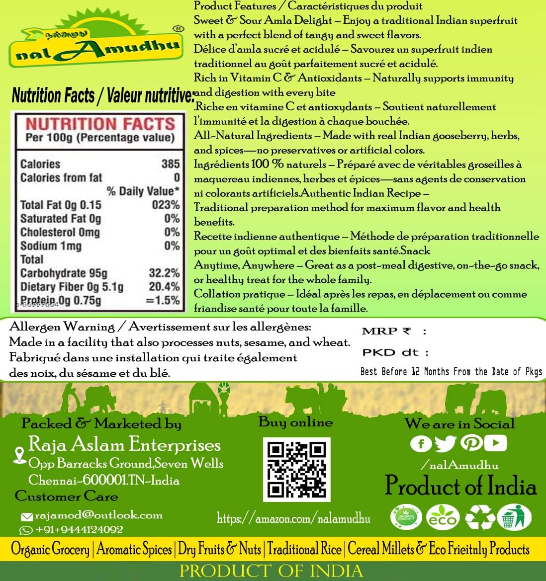 Nalamudhu Dried Indian Gooseberry Sweet & Sour Amla Slices 250G