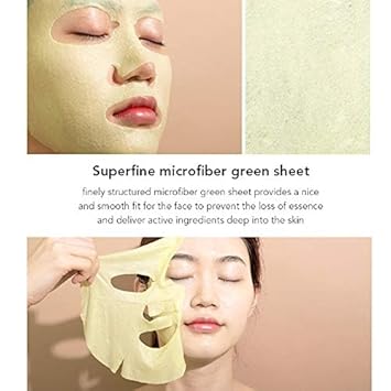 FEATURE OPTIMIZATION SHEETS : Microfiber green sheets, which are woven more tightly than regular sheets, adhere seamlessly to the skin. This allows it to gently wrap around the skin without loss the essence and the active ingredients in the ampoule are absorbed into the skin