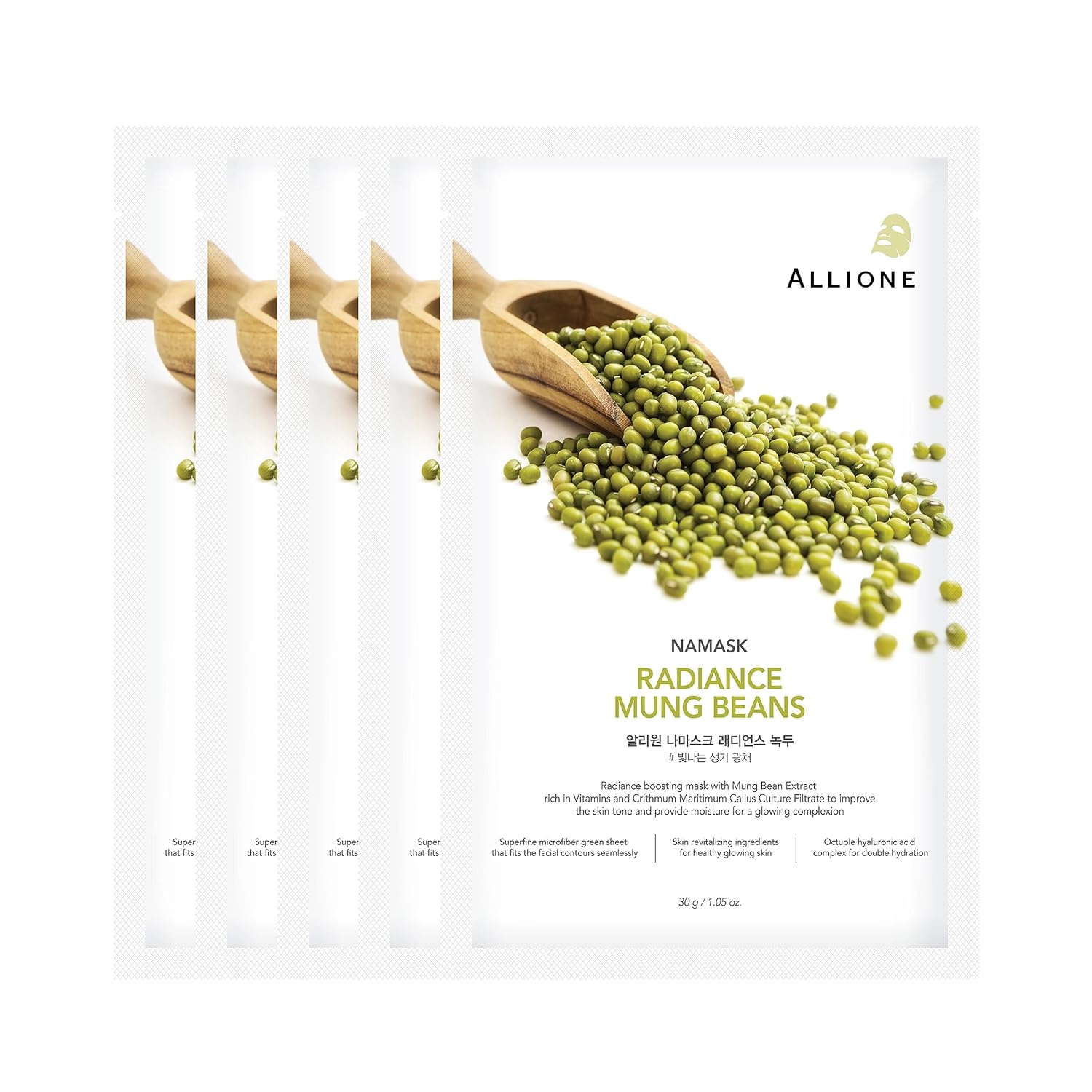 Namask Radiance Mung Beans Brightening Face Mask Sheets Set Of 5 Pcs | Korean Hydrating Face Mask, Face Oils Control Sheet Mask For All Skin Types