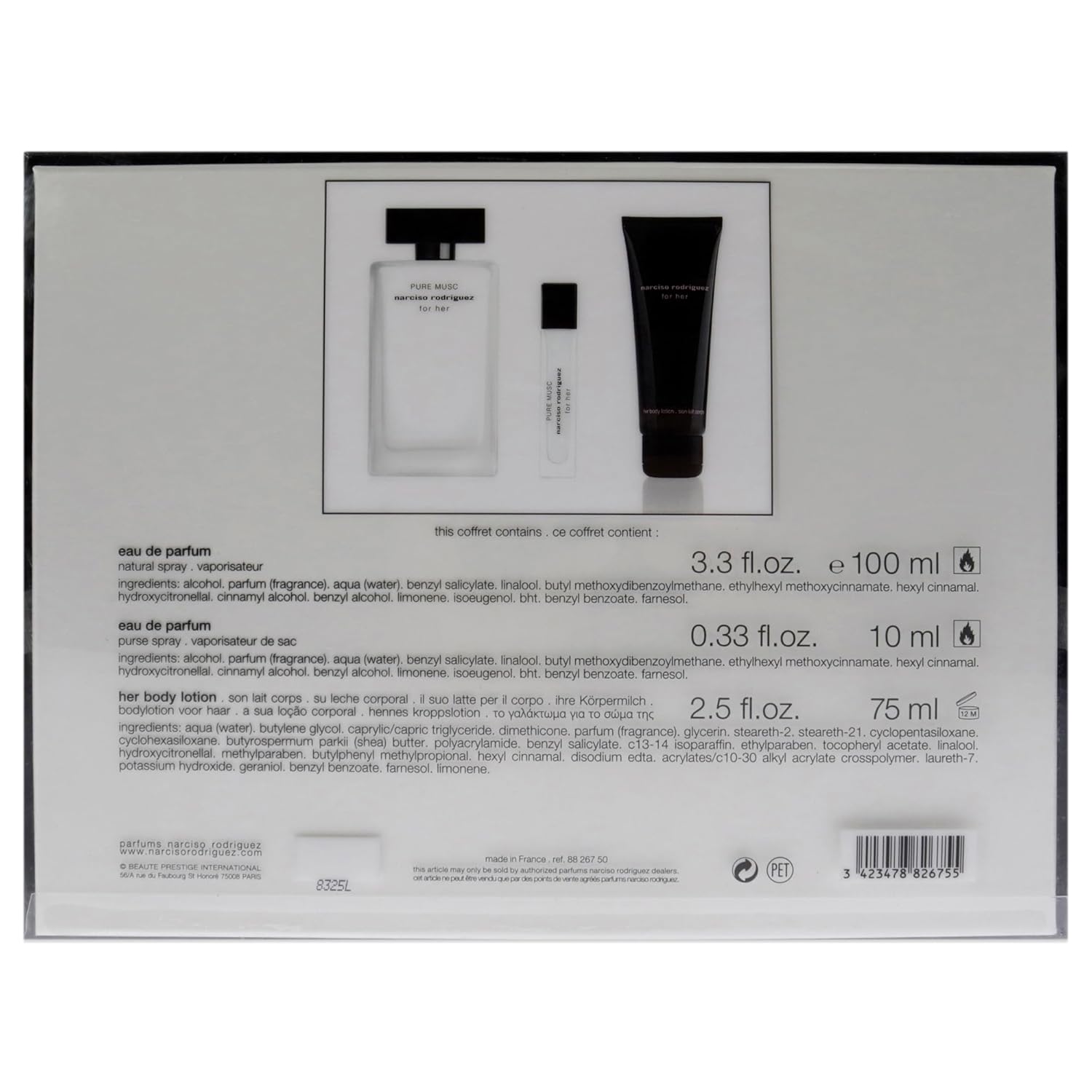 Narciso Rodriguez Pure Musc 3.3Oz Edp Spray, 0.33Oz Edp Spray, 2.5Oz Body Lotion Women 3 Pc Gift Set