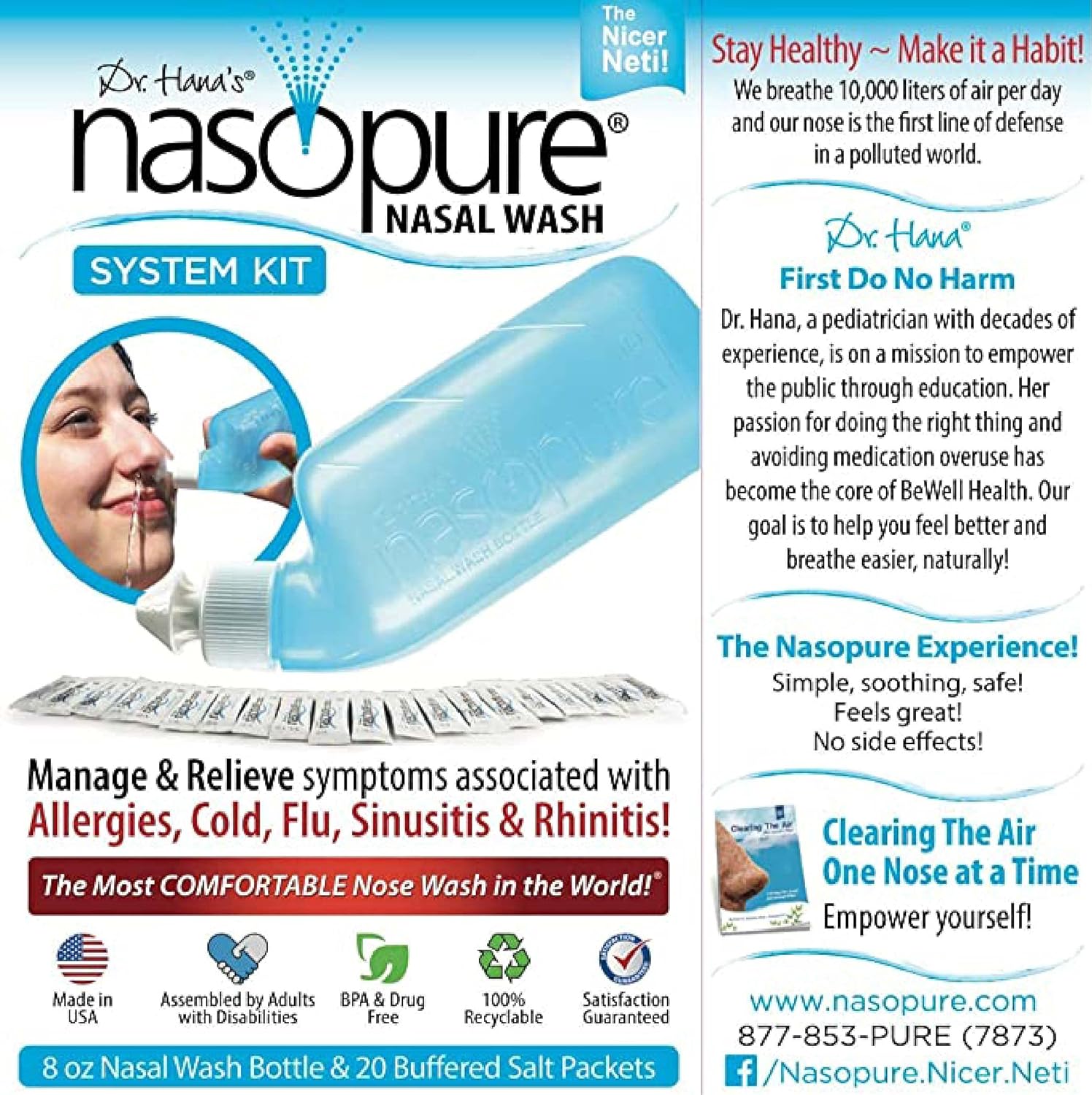 One system kit, dr. Hana's nasopure nasal wash, 8 ounce bottle, 20 salt packets