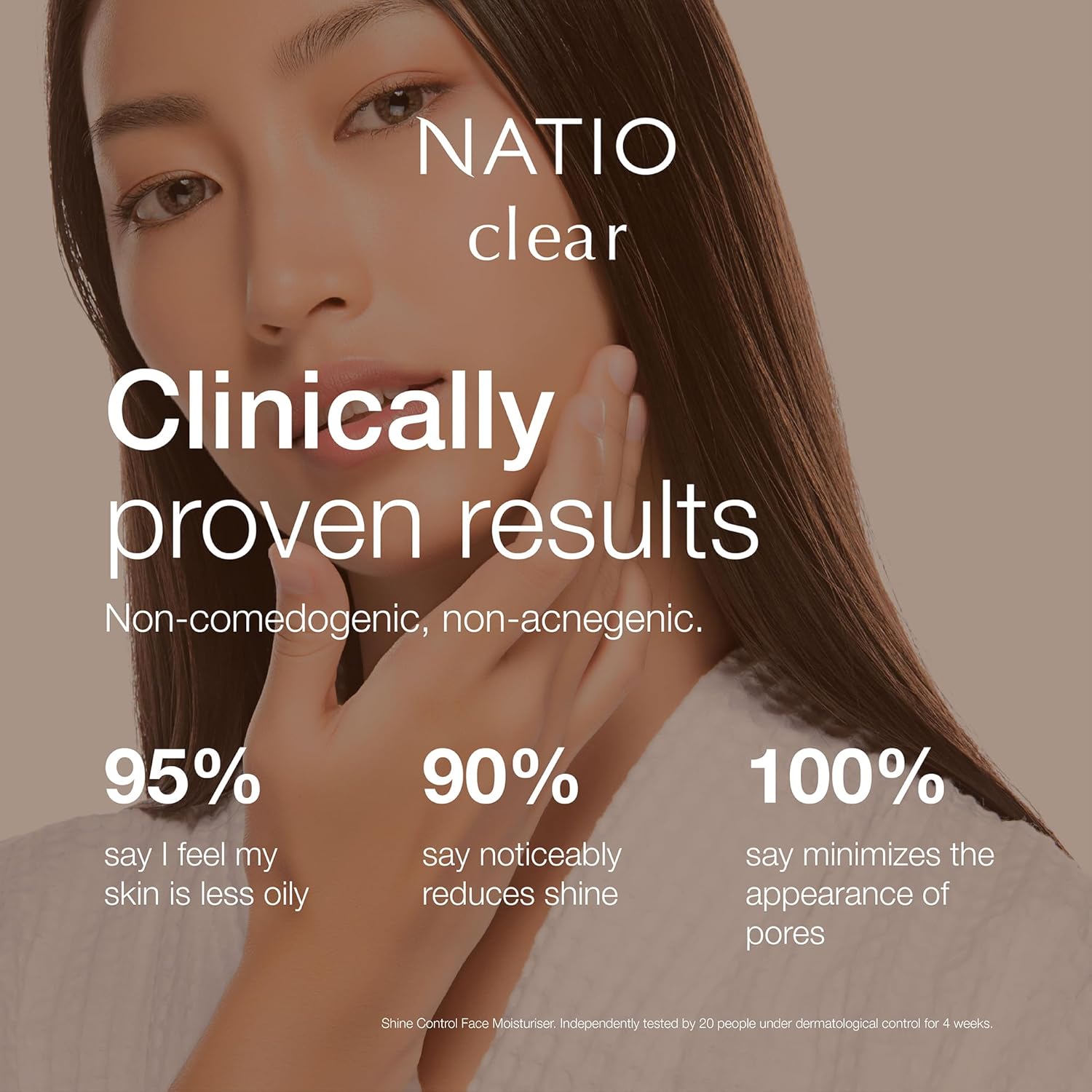Natio Australia Clear Shine Control Face Moisturiser, 125 Ml - Hydrating Face Cream - Vitamin E, Aloe - Matte Face Lotion For Oily, Acne Prone Skin