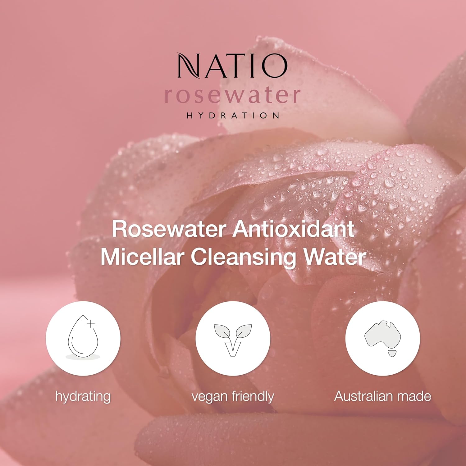 Natio Australia Rosewater Hydration Antioxidant Micellar Cleansing Water, 250 Ml - Makeup Remover Face Cleanser - Facial Cleanser For All Skin Types