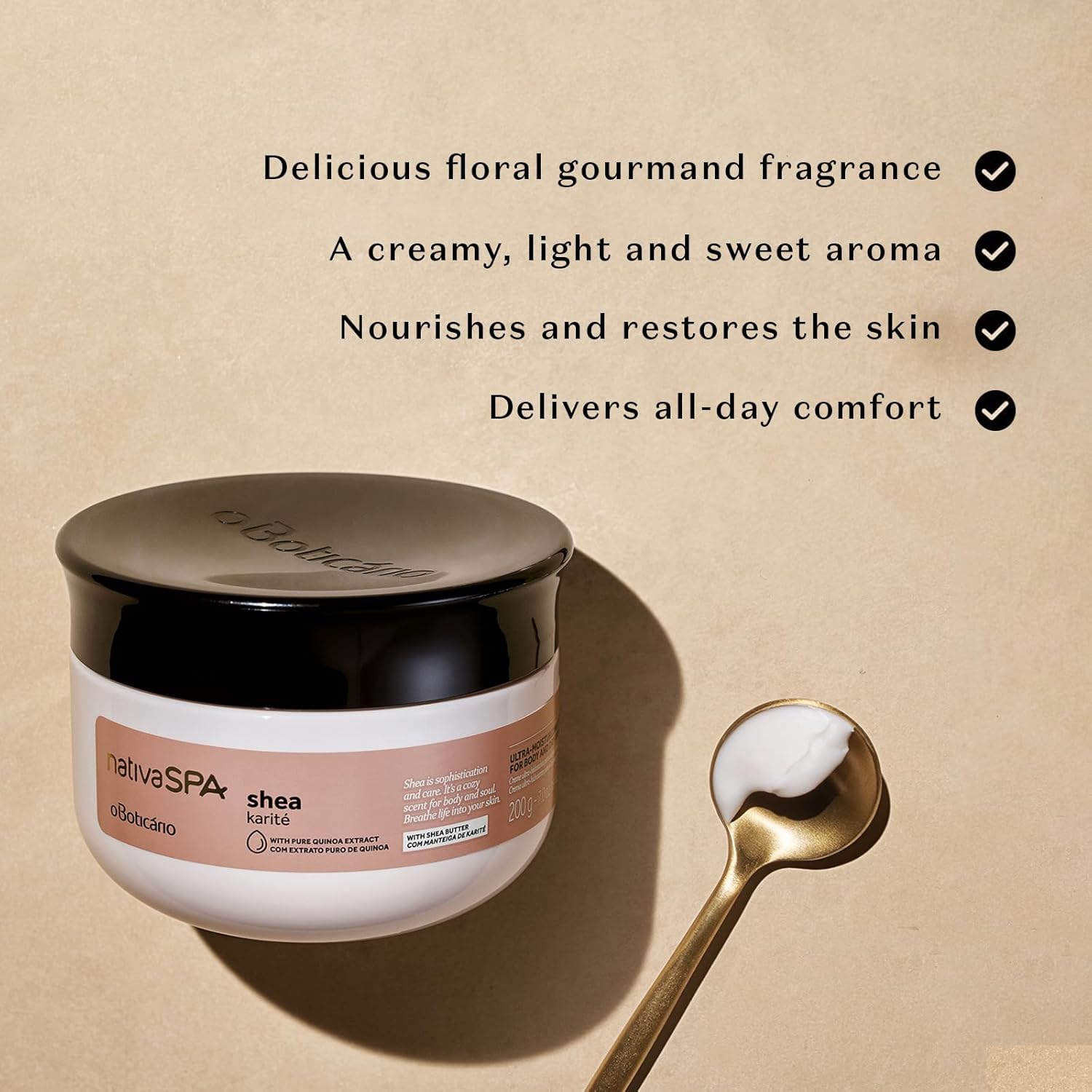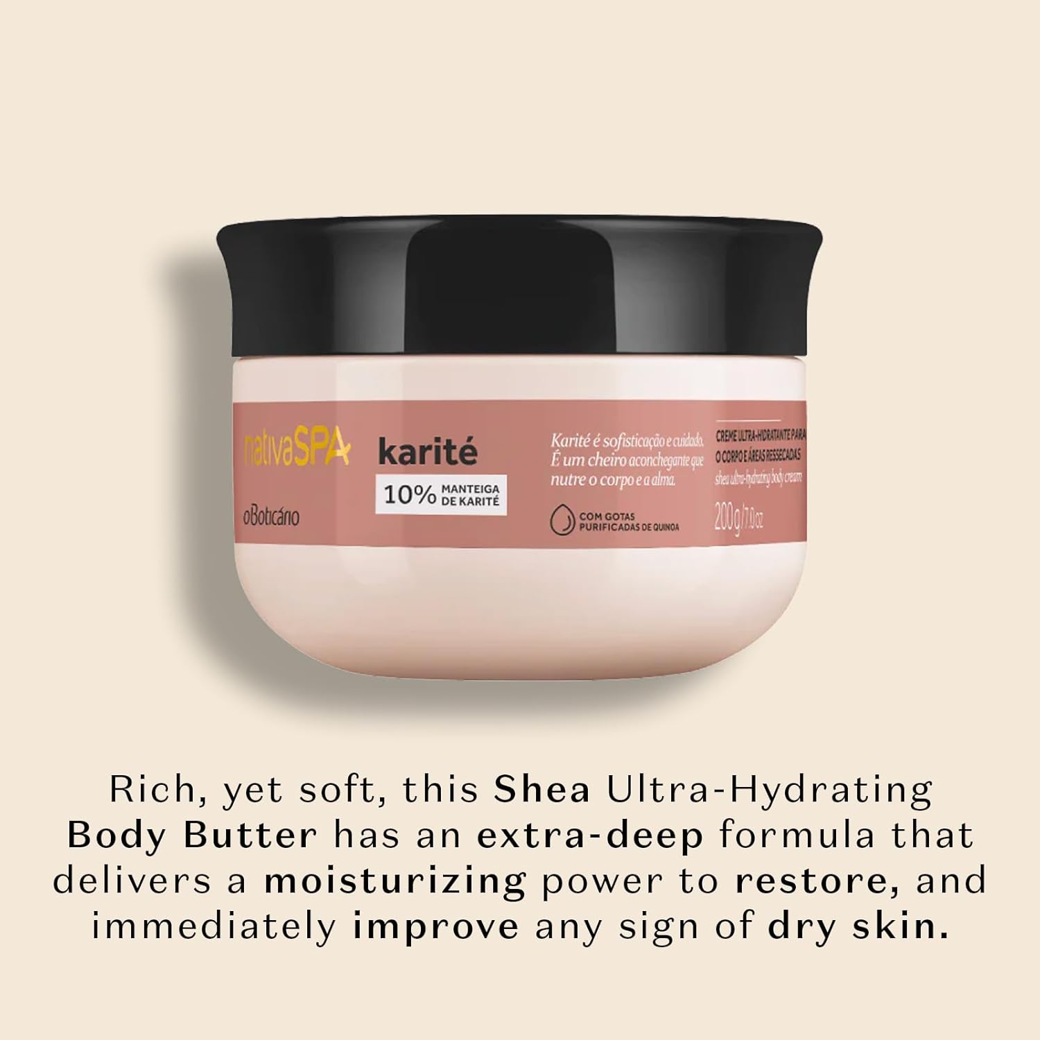 Nativa Spa By O Boticário, Shea Moisturizing Body Butter, Deep Hydration And Nourishment For Silky-Soft Skin, 7 Ounce