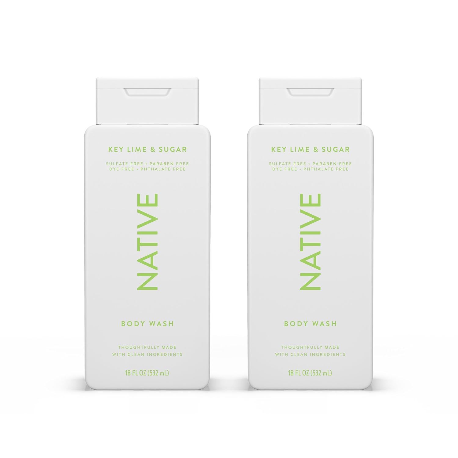 Native Body Wash Contains Naturally Derived Ingredients | For Women & Men, Sulfate, Paraben, & Dye Free Leaving Skin Soft And Hydrating | Key Lime & Sugar 18 Oz - 2 Pk